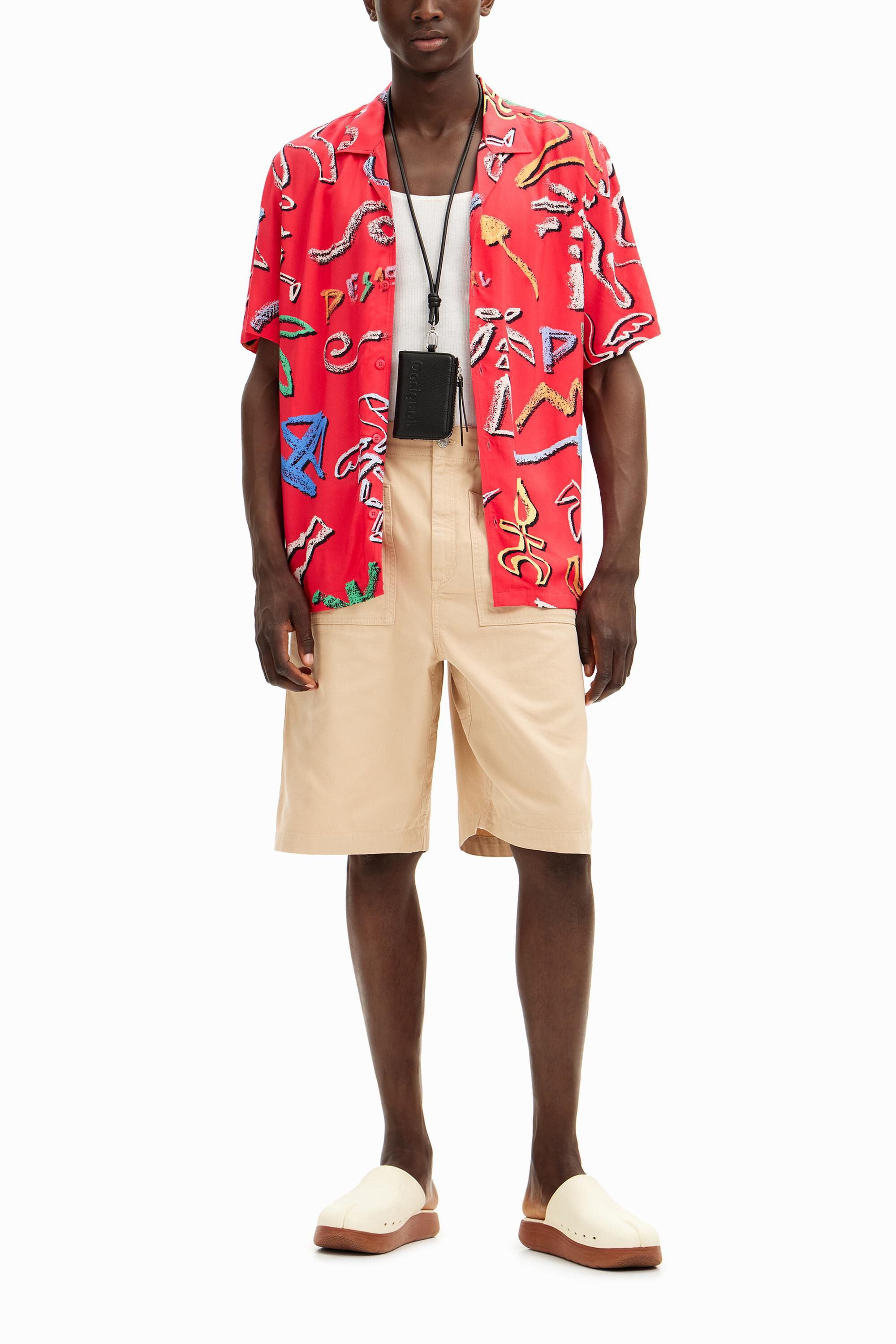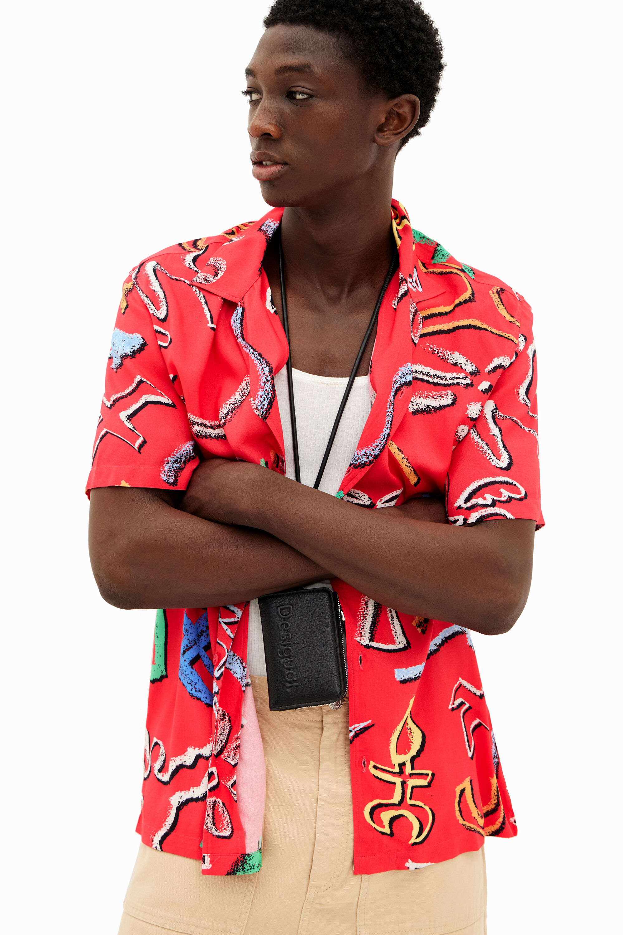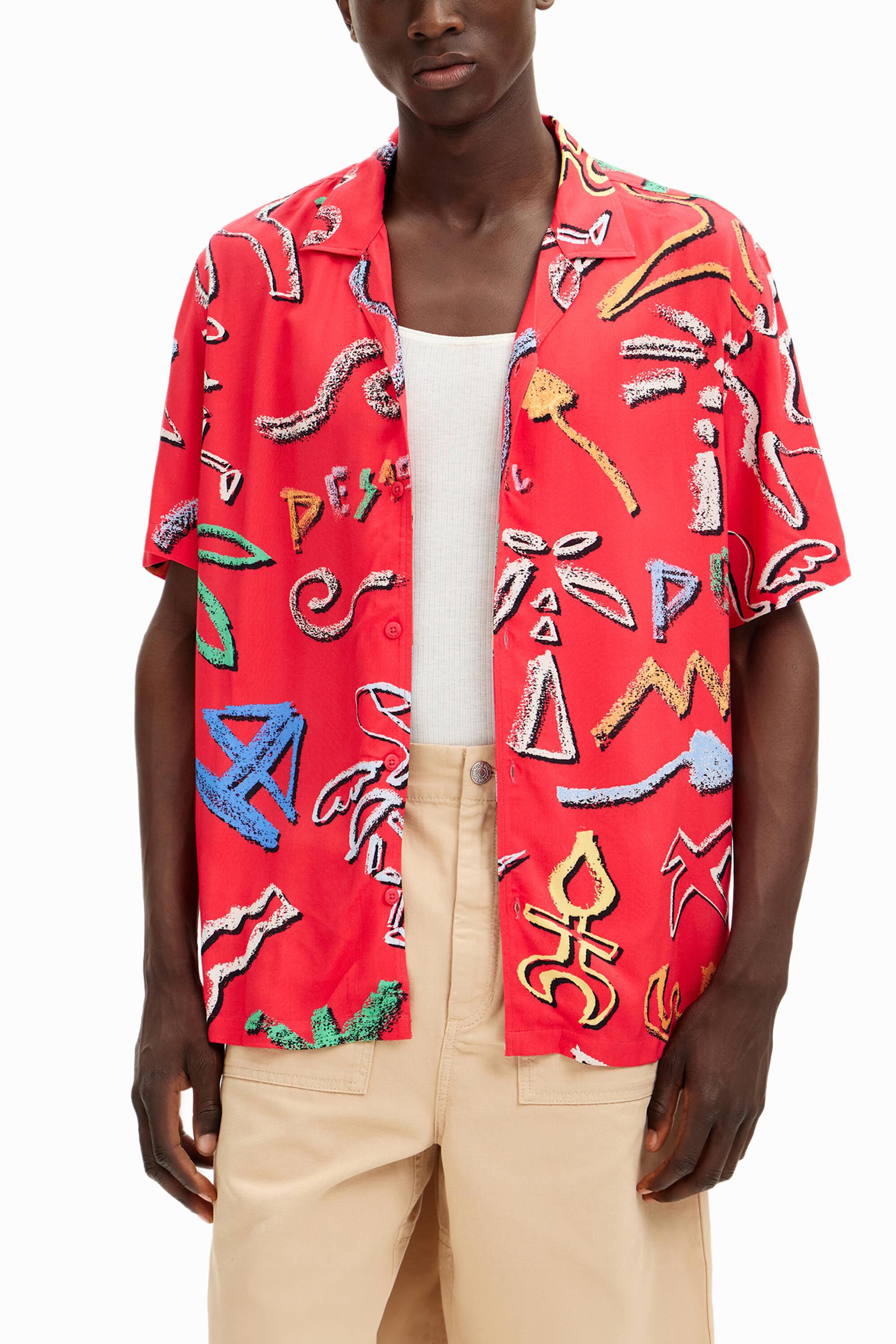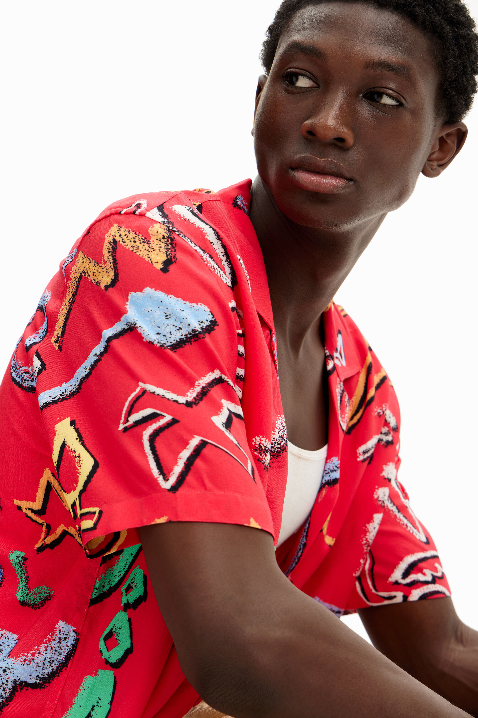 Short-sleeved shirt with button closure and artistic motif illustrationsFit: