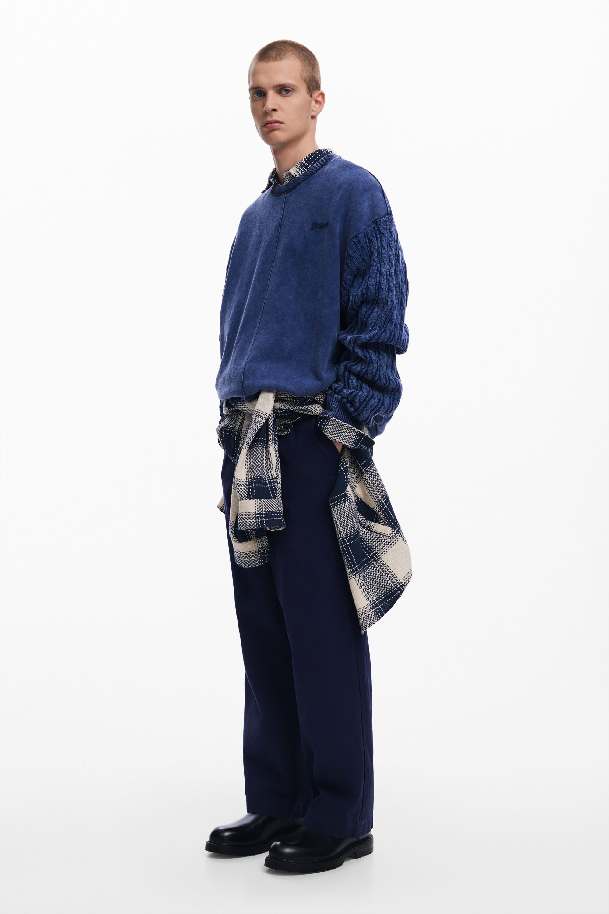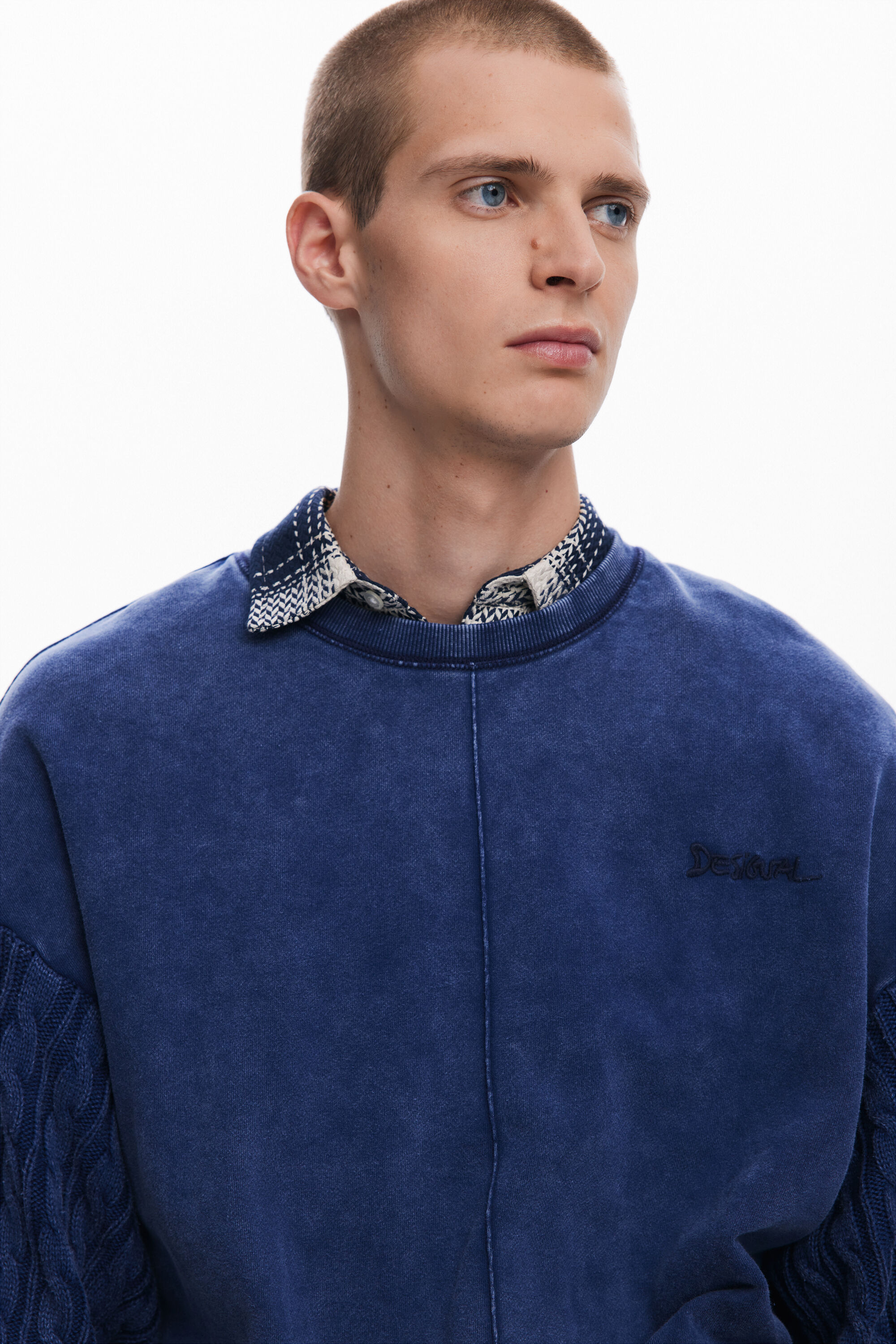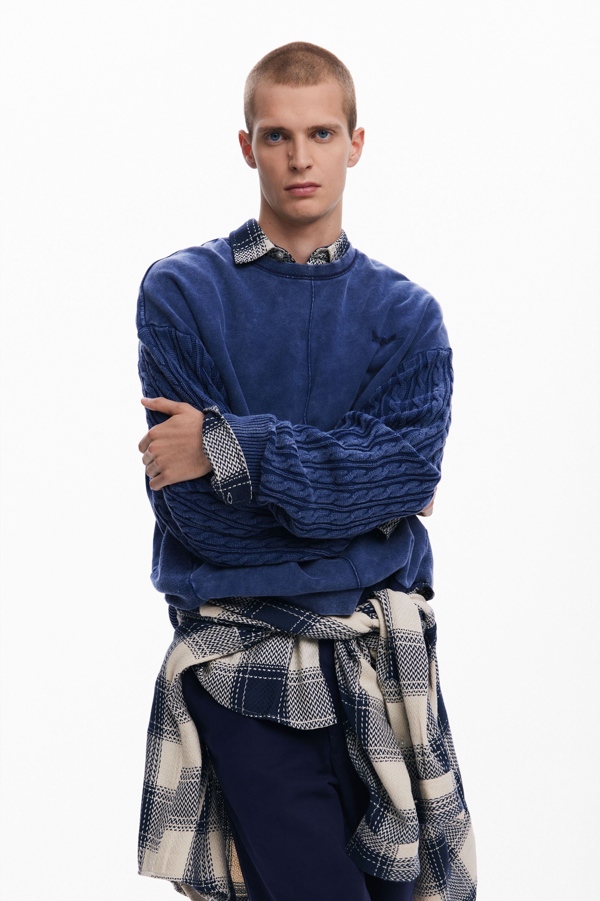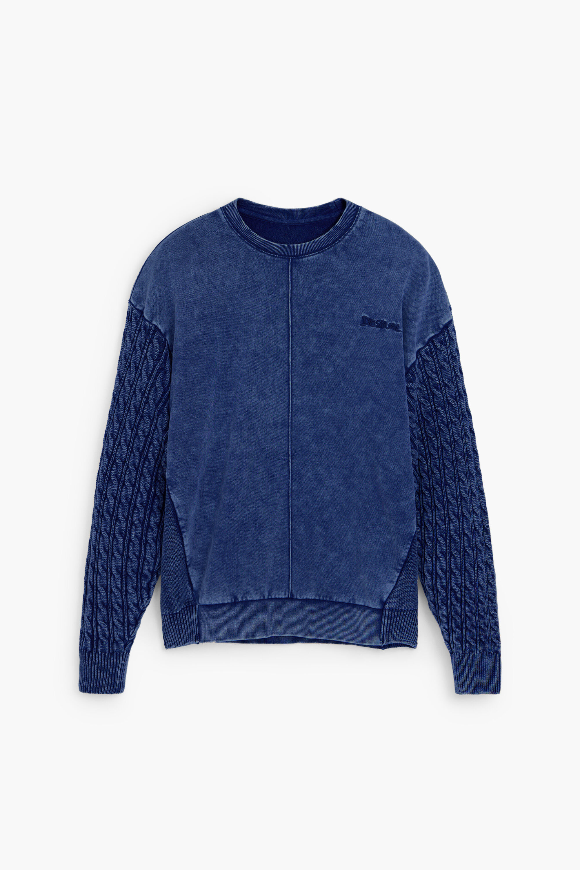 Long-sleeve sweatshirt with a mock neck, braided sleeves, and a small embroidered logo on the chest.Fit: RegularNeckline: PerkinsSleeve: LongCombined jersey sleevesWhen you buy cotton products from Desigual, you are supporting our investment in Better Cotton.