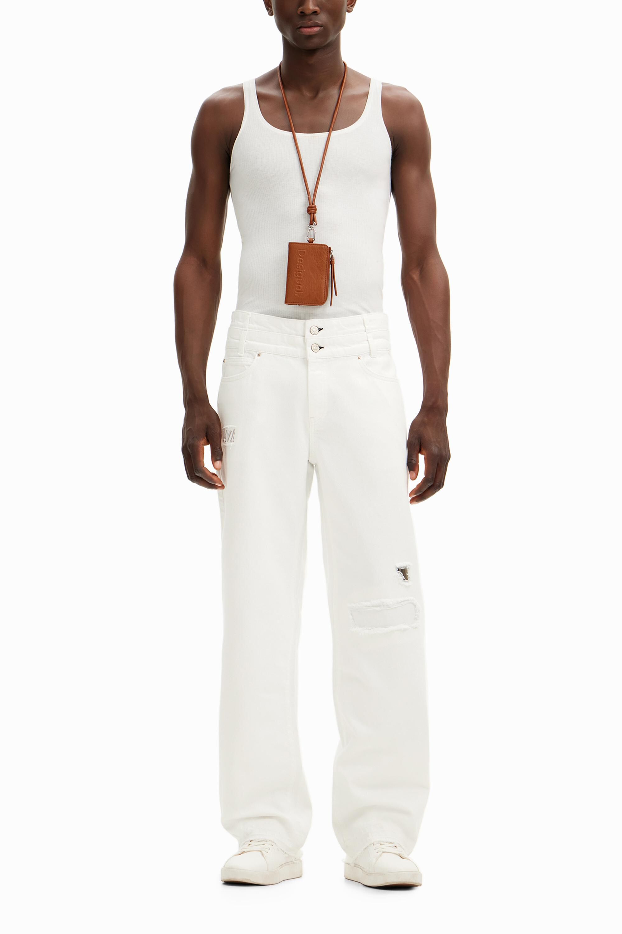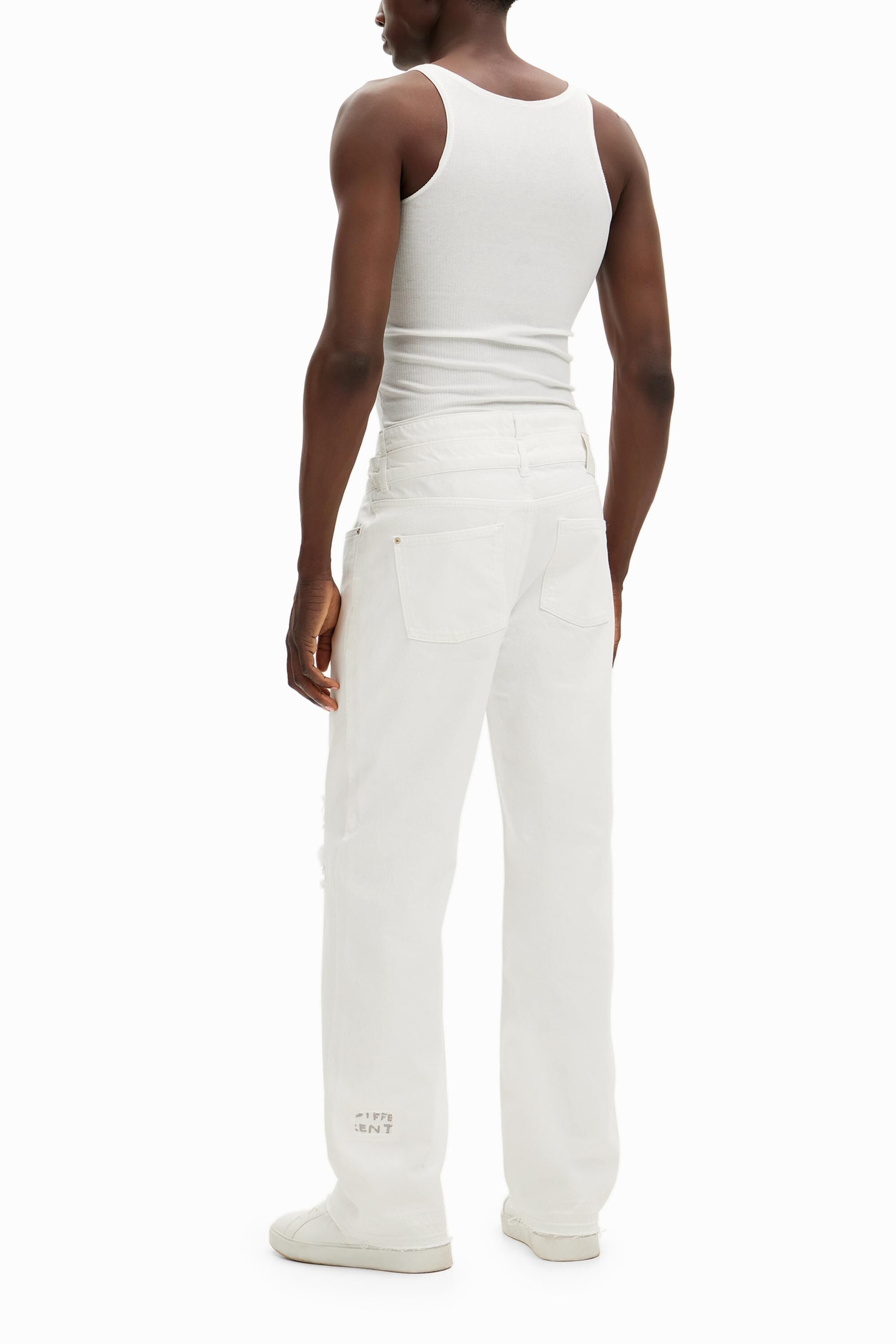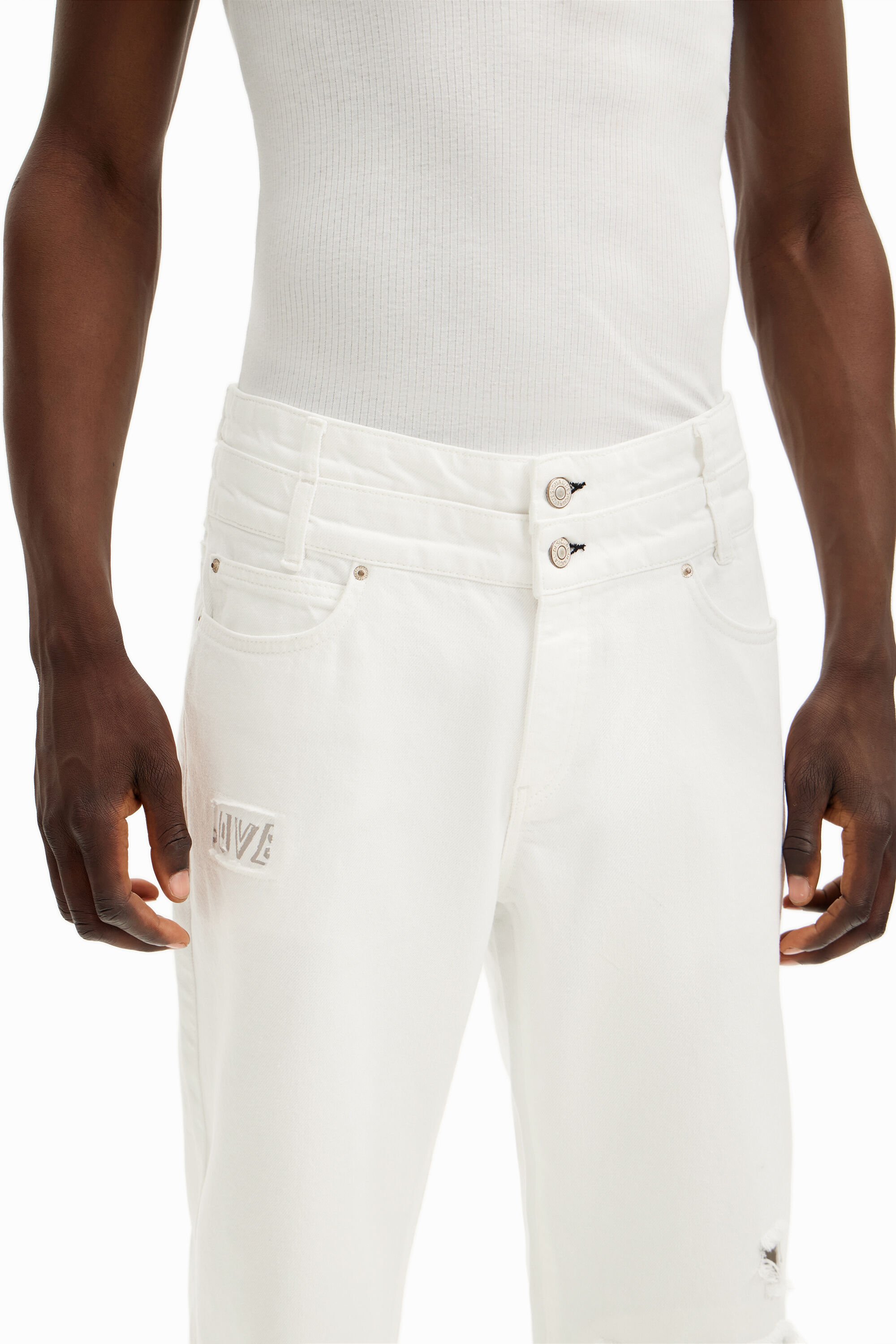 Long denim pants with a rip at the kneeFit: RegularLength: longSolid colorButton and zipper closureWhen you buy cotton products from Desigual, you are supporting our investment in Better Cotton.