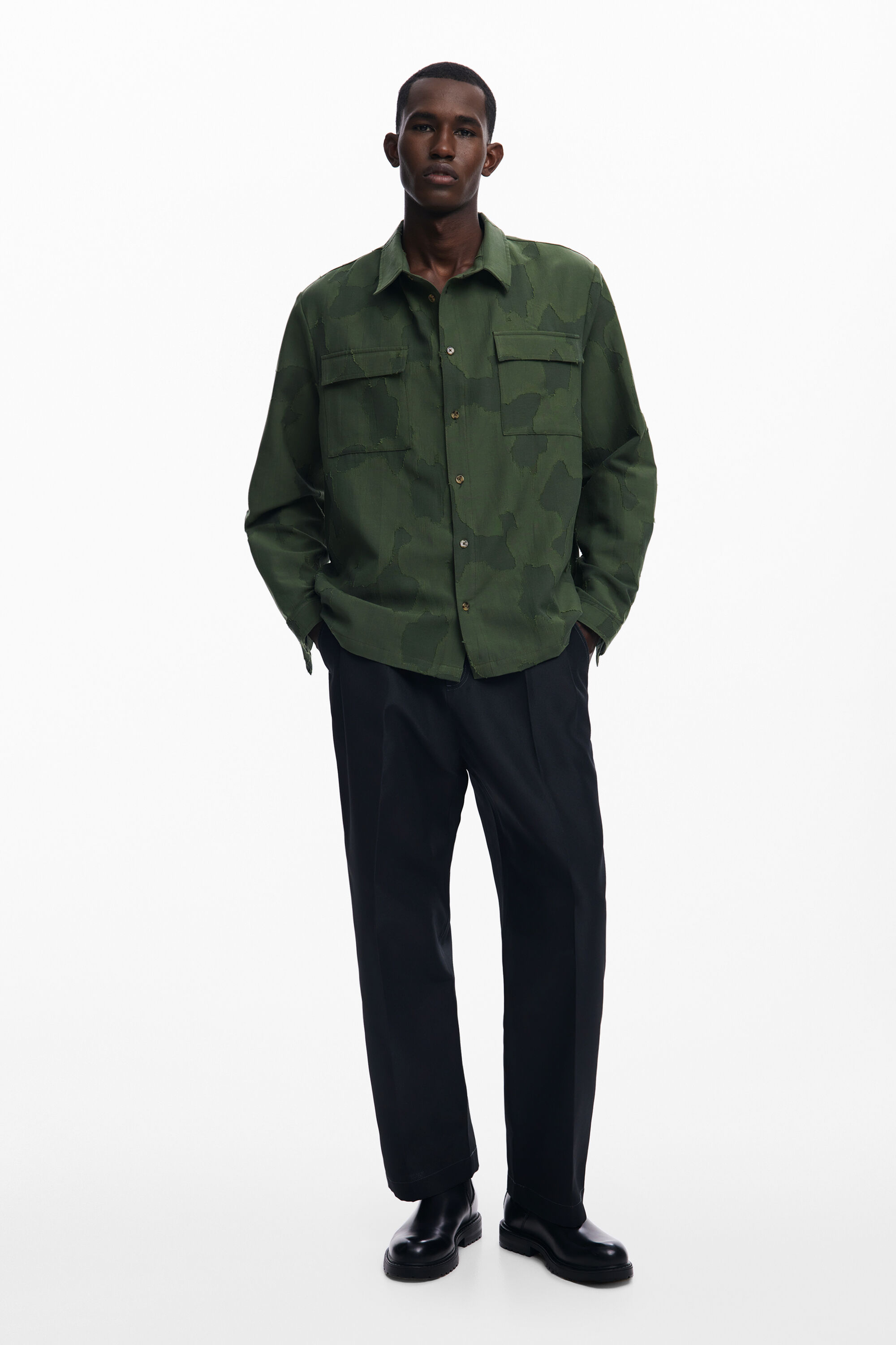 Long-sleeve shirt with a soft touch, long sleeves, two front pockets, and tactical print.Fit: RegularCollar: ShirtSleeve: LongTwo front pocketsClosure: Front buttonsWhen you buy cotton products from Desigual, you are supporting our investment in Better Cotton.