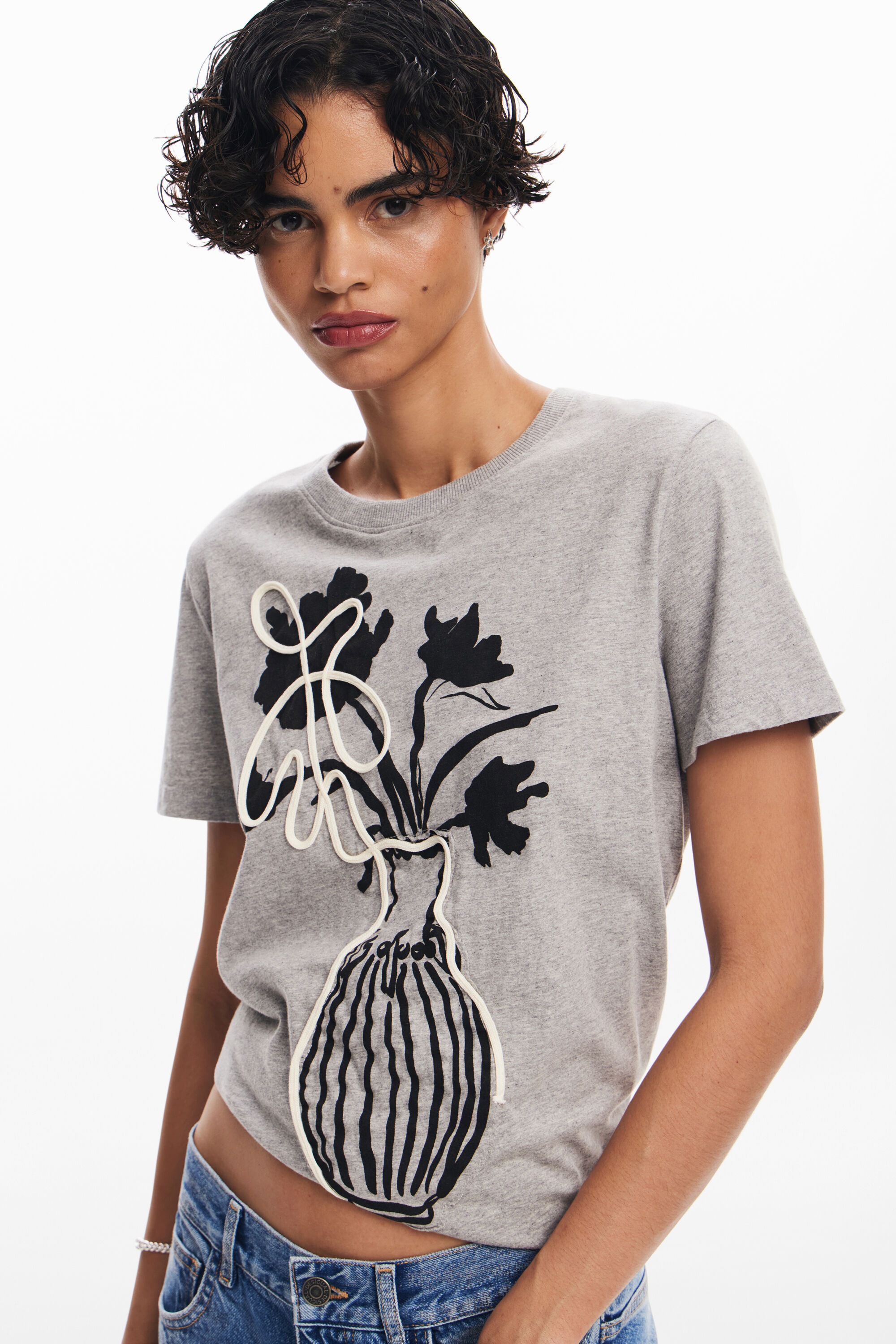 Short-sleeved cotton T-shirt with a round neck and a vase with flowers printFit: RegularSigned vase printRound neckShort sleeveCotton fabricWhen you buy cotton products from Desigual, you are supporting our investment in Better Cotton.