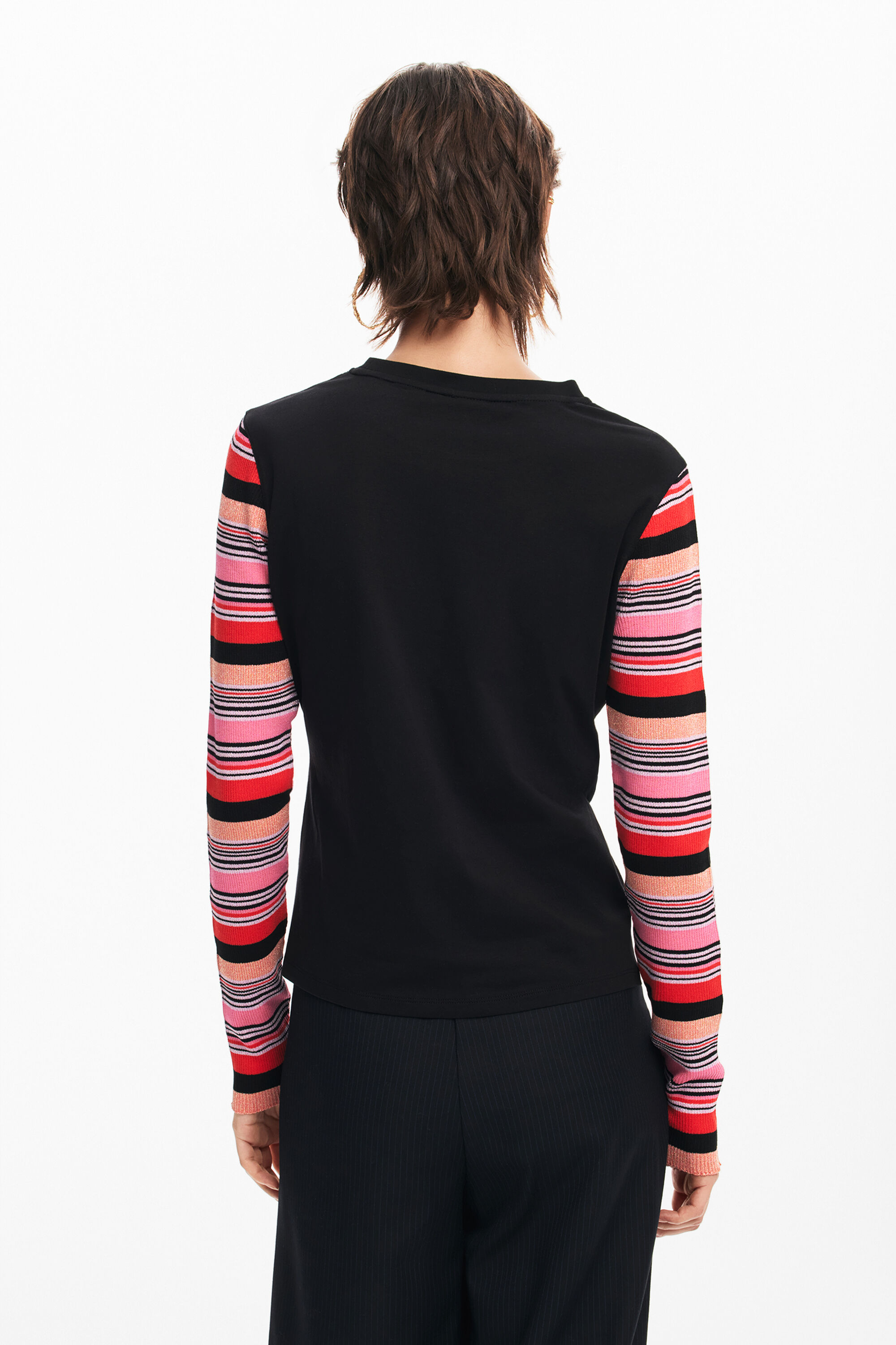 Long-sleeve T-shirt, fine knit fabric, and round neck with front print of Mickey Mouse and striped pattern on the sleevesFit: RegularFront print of Mickey Mouse and striped pattern on the sleevesRound neckLong sleeveWhen you buy cotton products from Desigual, you are supporting our investment in Better Cotton.