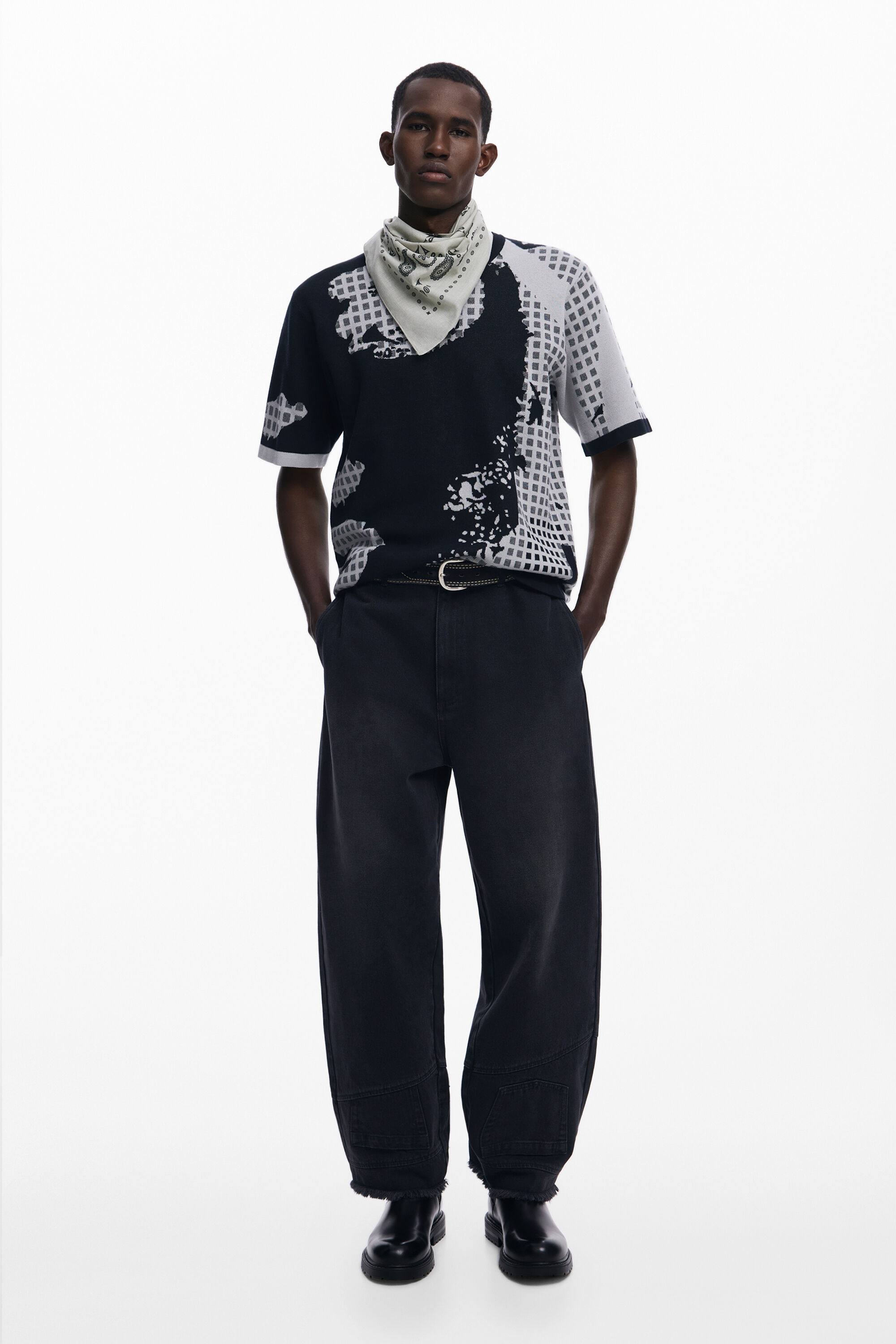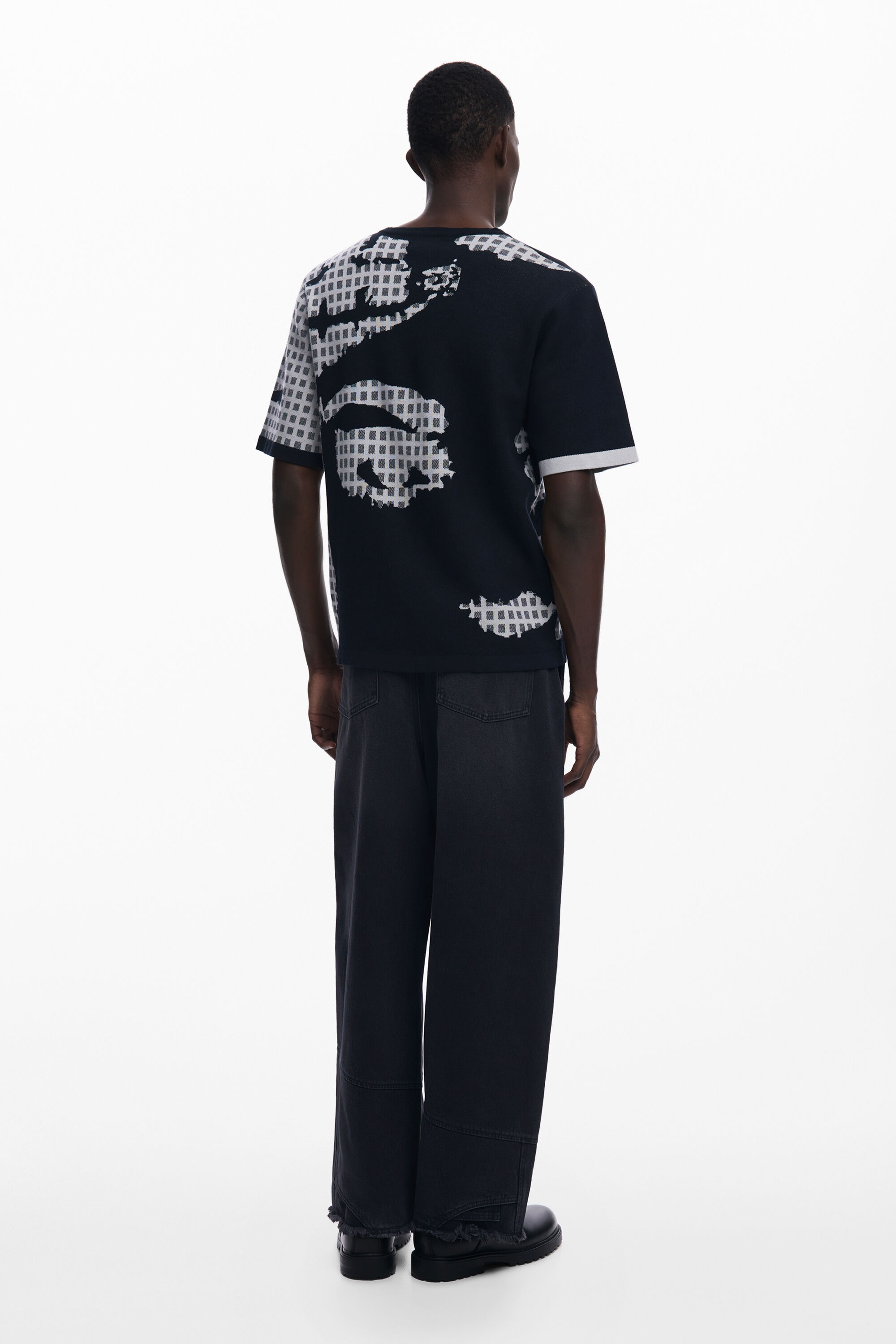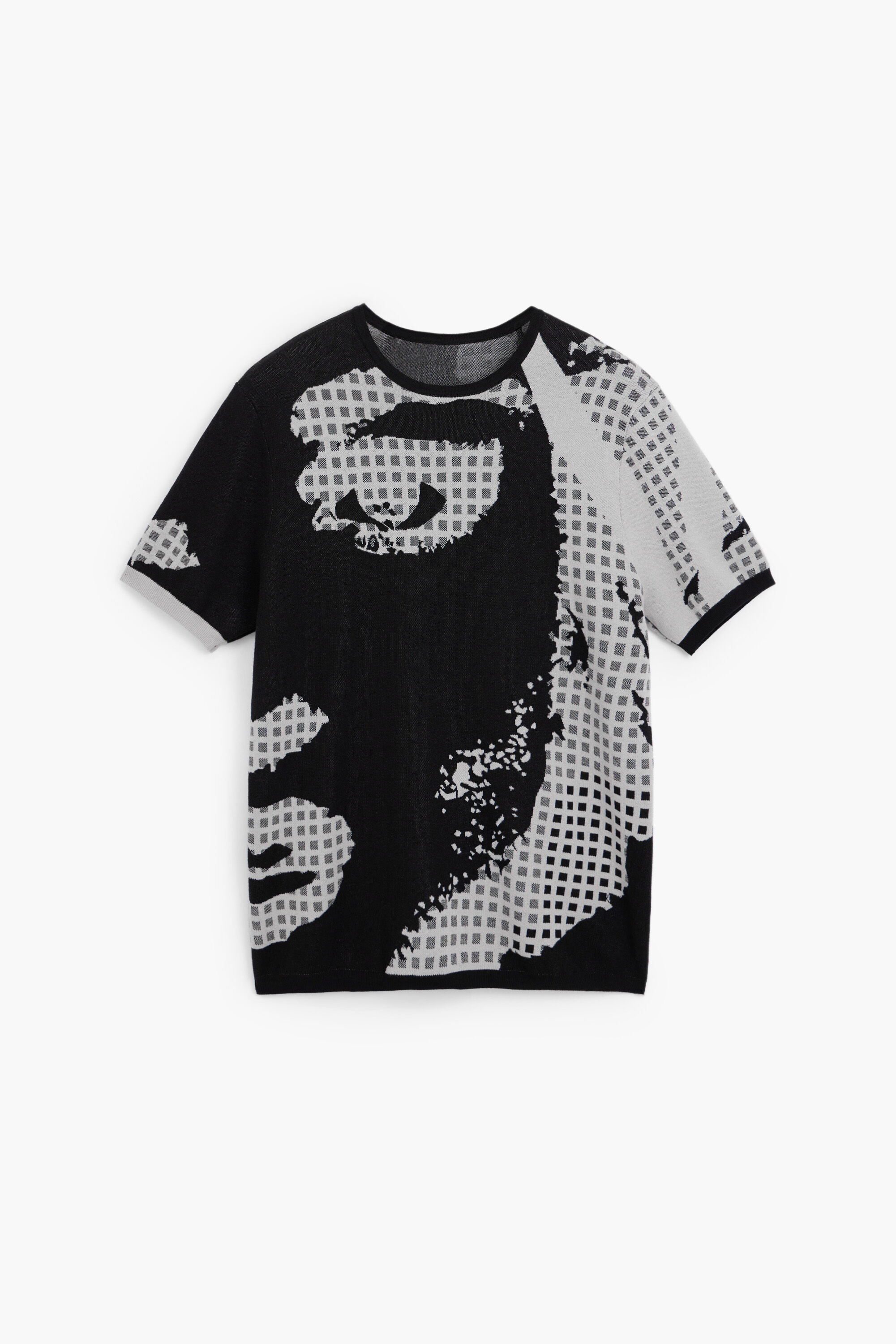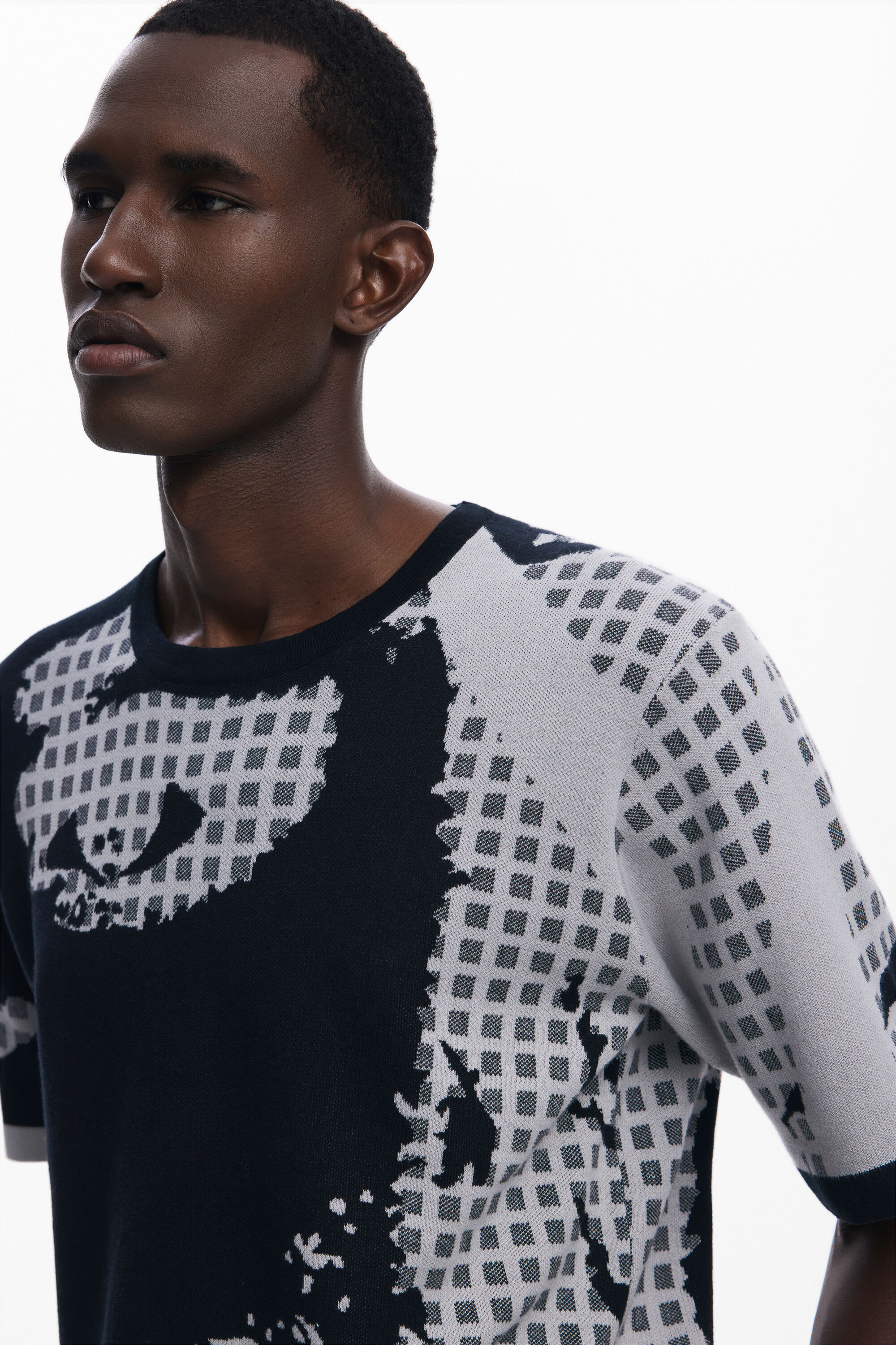 Jacquard short-sleeve T-shirt with a round neck and pixelated face print.