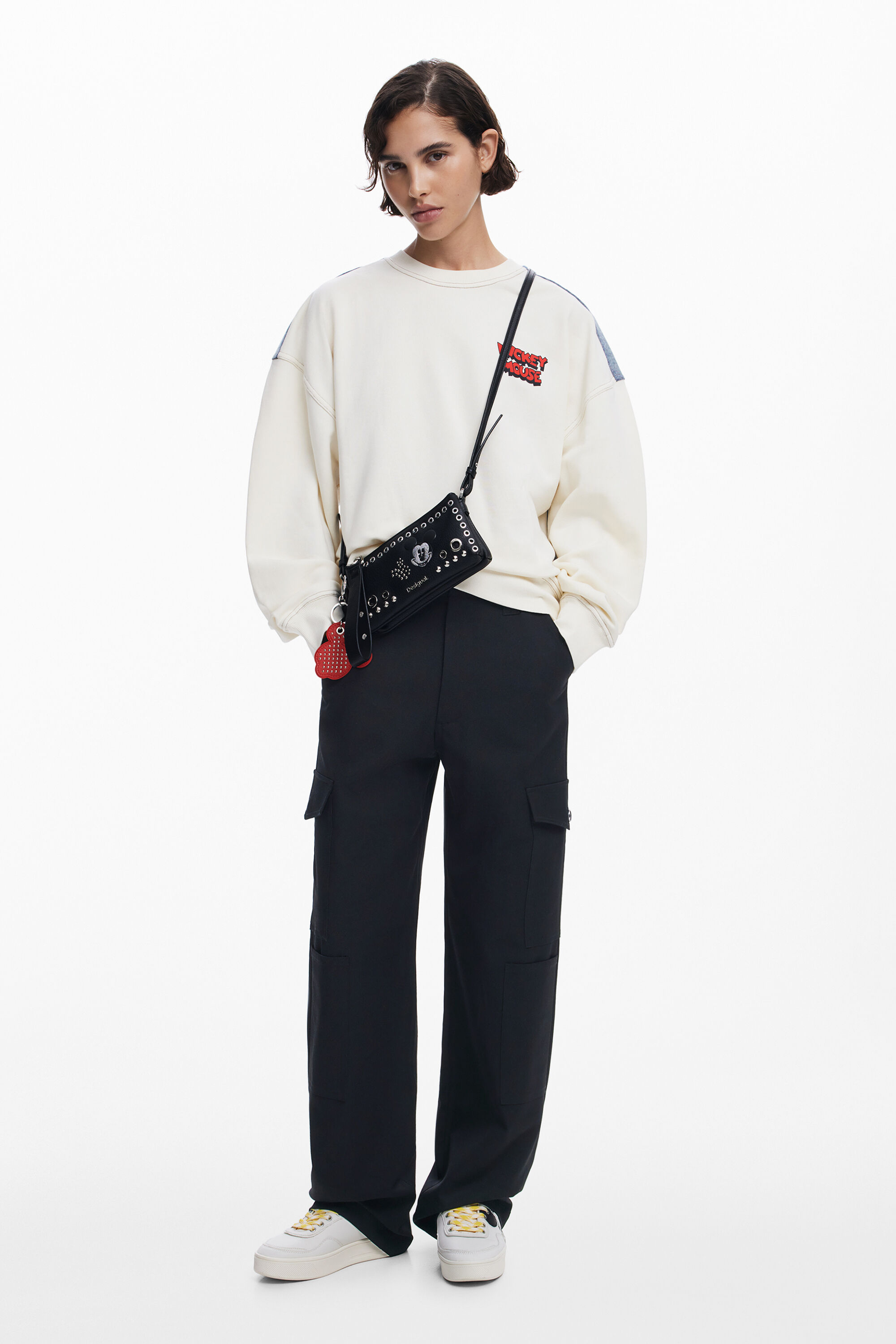 Medium wallet with adjustable strap to wear as a crossbody, in faux leather fabric, with handle, studs, and Mickey Mouse™ embroidery, the iconic Disney™ character.Multiple interior pocketsZipper closureDetachable handleLeather effectLicense: Disney™Recycled polyesterMeasurements: 19.5 x 4 x 10 cm