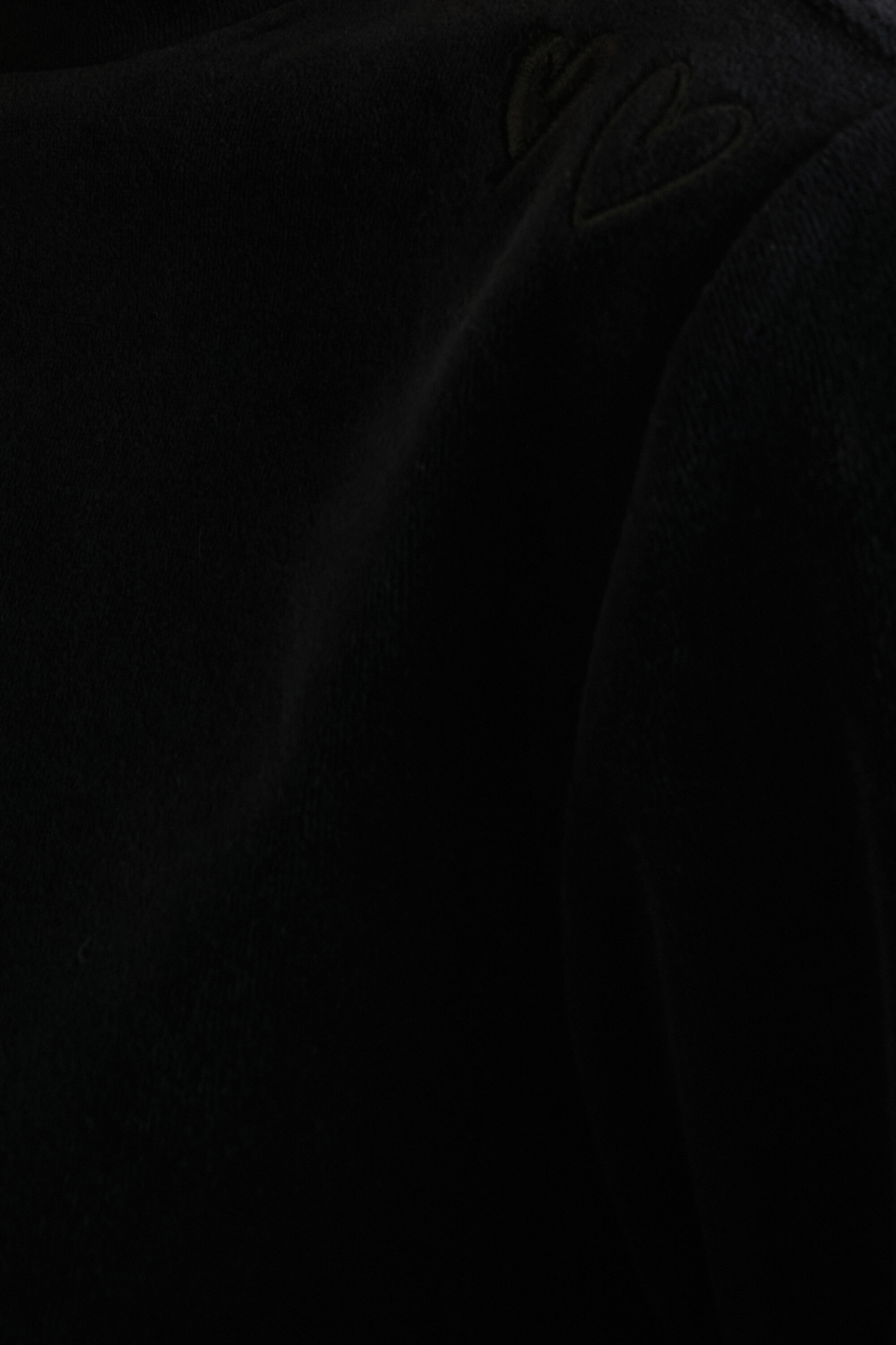 With a pen effect message on the subtle side bands of its sleeves.High neckHigh waistPlush with peachskin textureSide bands on the sleeves with printed pen effect messageRegular fitLong sleeves