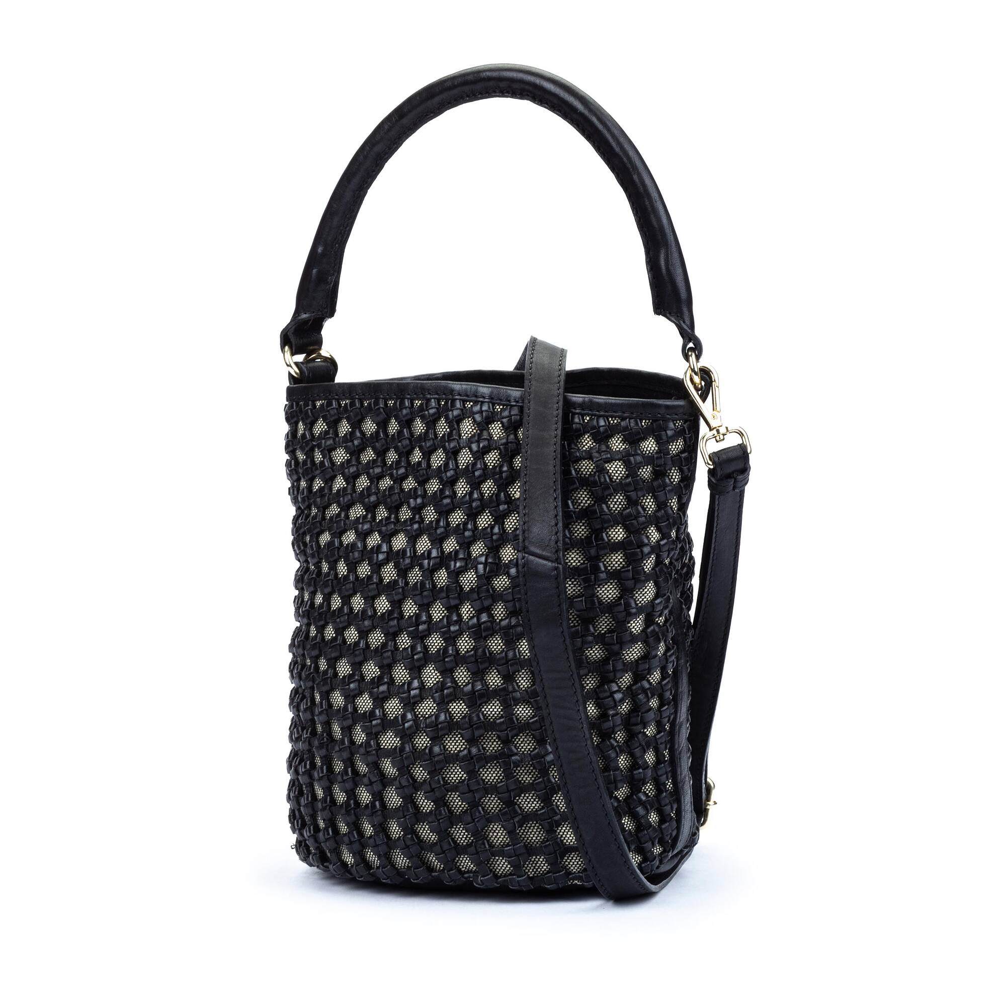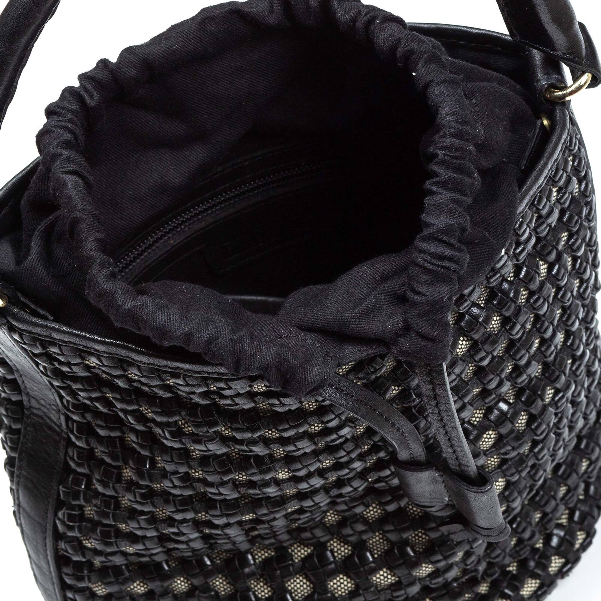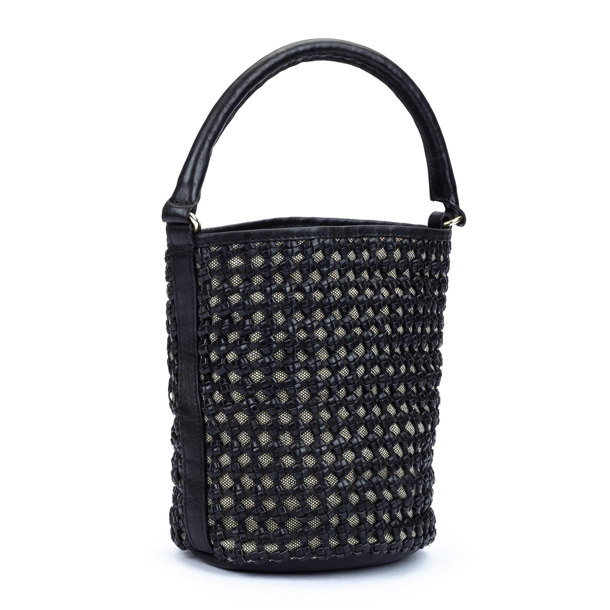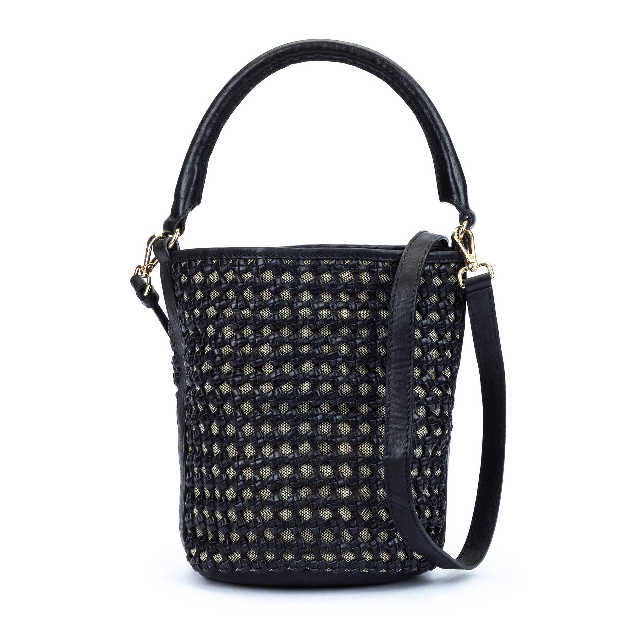 Date un capricho y ve siempre a la moda con este bolso tipo cubo que acaba en forma de saco con cordón ajustable y que puedes llevar tanto en el hombro como de bandolera.