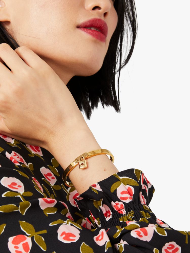 1 Cm Gewicht 25 G Importiert Style No K6232 Kate Spade Lock And Spade Armreif Mit Anhänger Für Frauen In Gold Kubikzirkonie