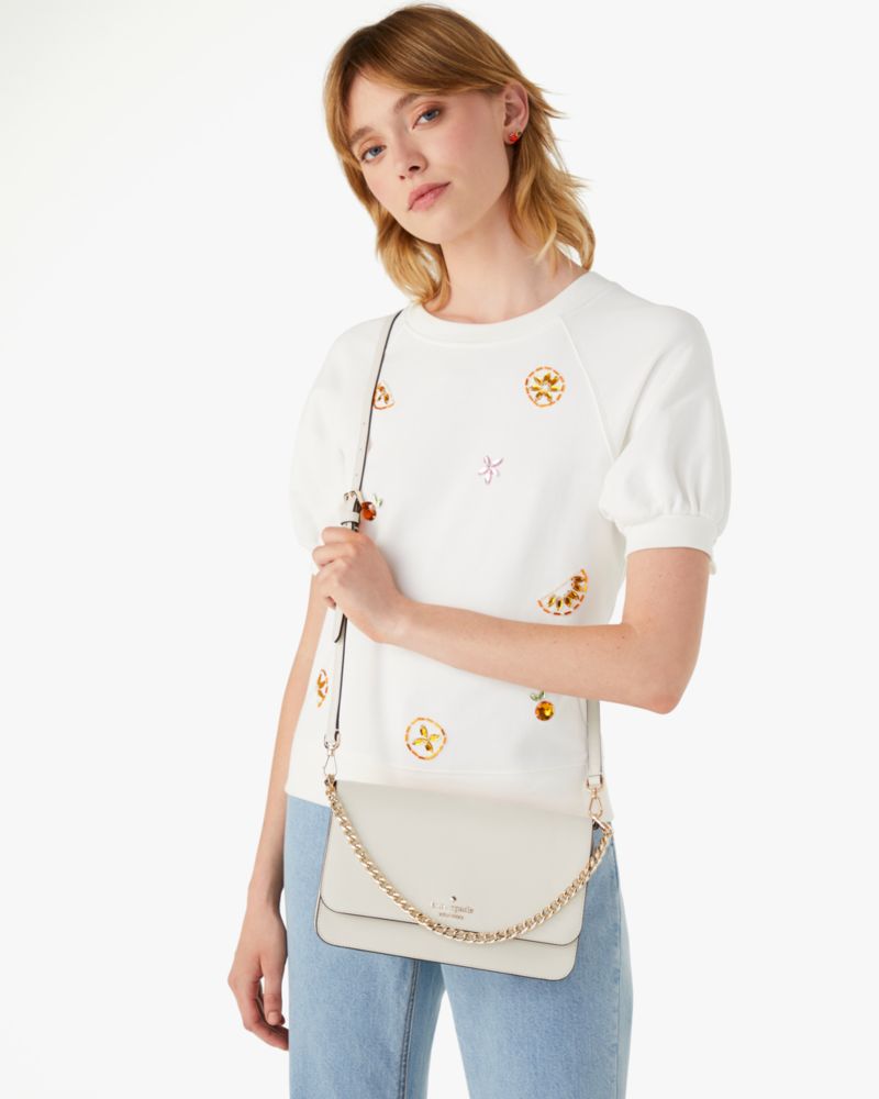 Sie Ist Aus Saffianleder Gefertigt Und Hat Eine Praktische Reißverschlusstasche Für Deine Essentials Kate Spade Madison Umhängetasche Mit Umschlag Aus Weide, Wandelbar, Mittelgroß Für Frauen In Baiser Saffianleder