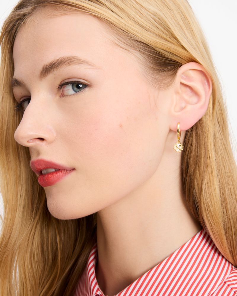 Größen Länge 2,5 Cm Breite 1,5 Cm Eigenschaften Schnappverschluss Materialien Plattiertes Metall Zirkonia Stifte Aus Chirurgenstahl Style No Kg345 Kate Spade Heritage Bloom Creolen, Klein Für Frauen In Transparent/gold Kubikzirkonie