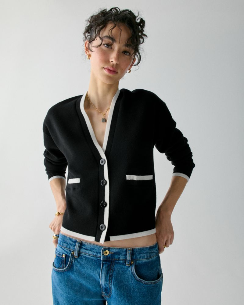 Kate Spade Cardigan Mit V-Ausschnitt Und Einfassung Für Frauen In Schwarz/creme