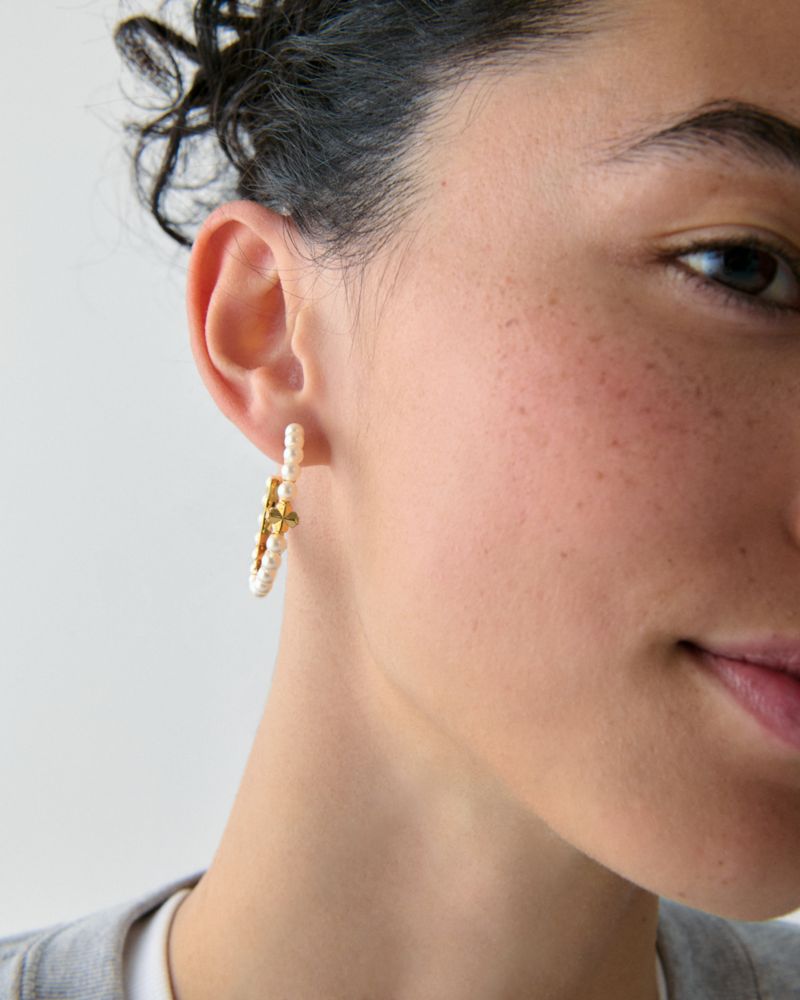 Kate Spade Spade Flower Pearl Creolen Für Frauen In Weißgold Kubikzirkonie