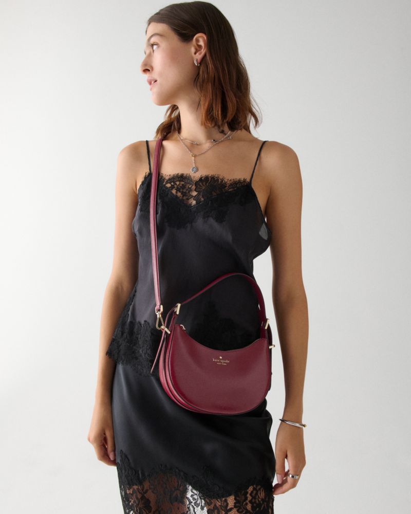 Eine Kompakte Schultertasche, Die Für Aufsehen Sorgt Kate Spade Nova Crescent Schultertasche Aus Strukturiertem Lackleder, Klein Für Frauen In Rote Marmelade Leder