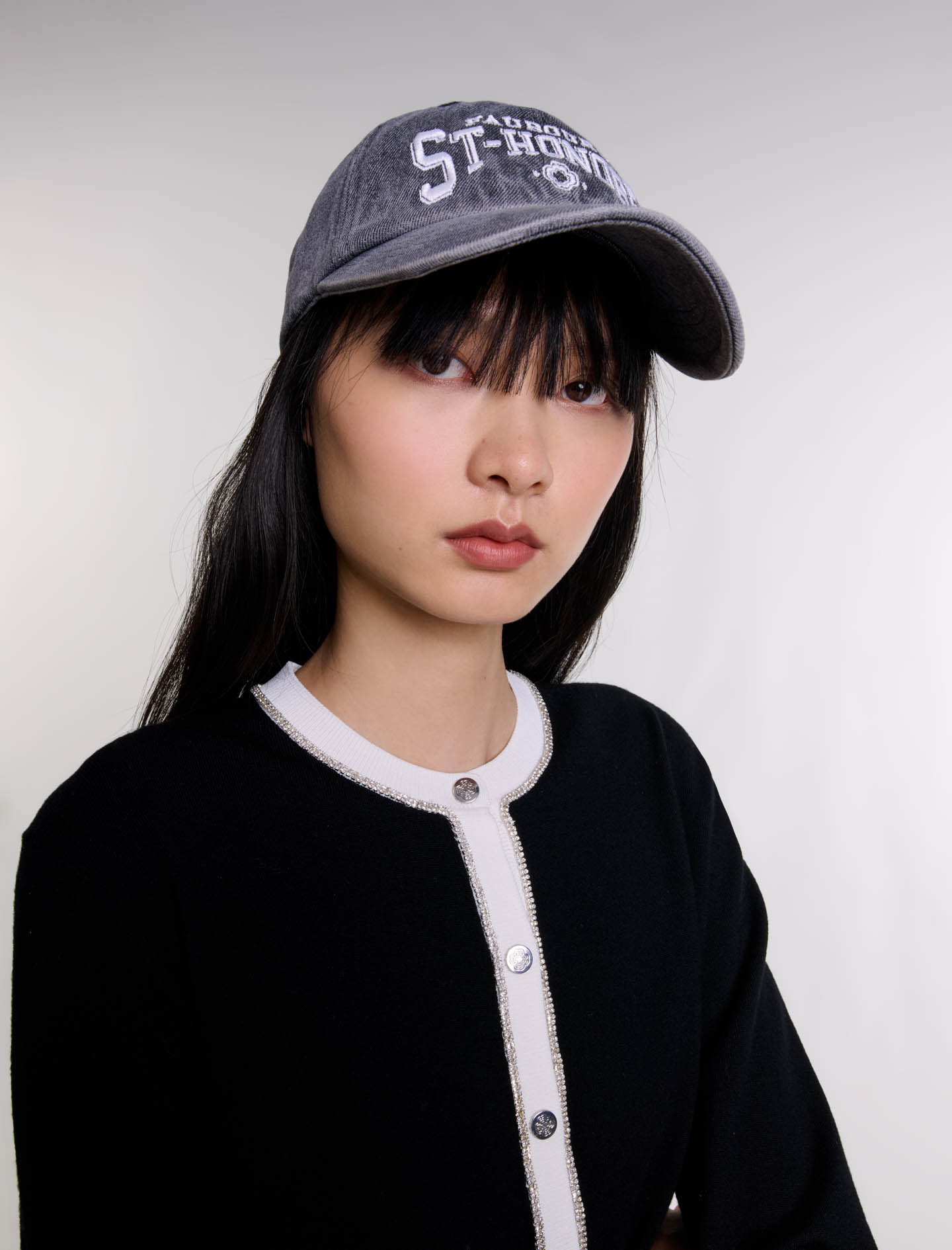 Maje Woman's cotton Saint Honoré denim cap for Fall/Winter, in color Grey / Grey