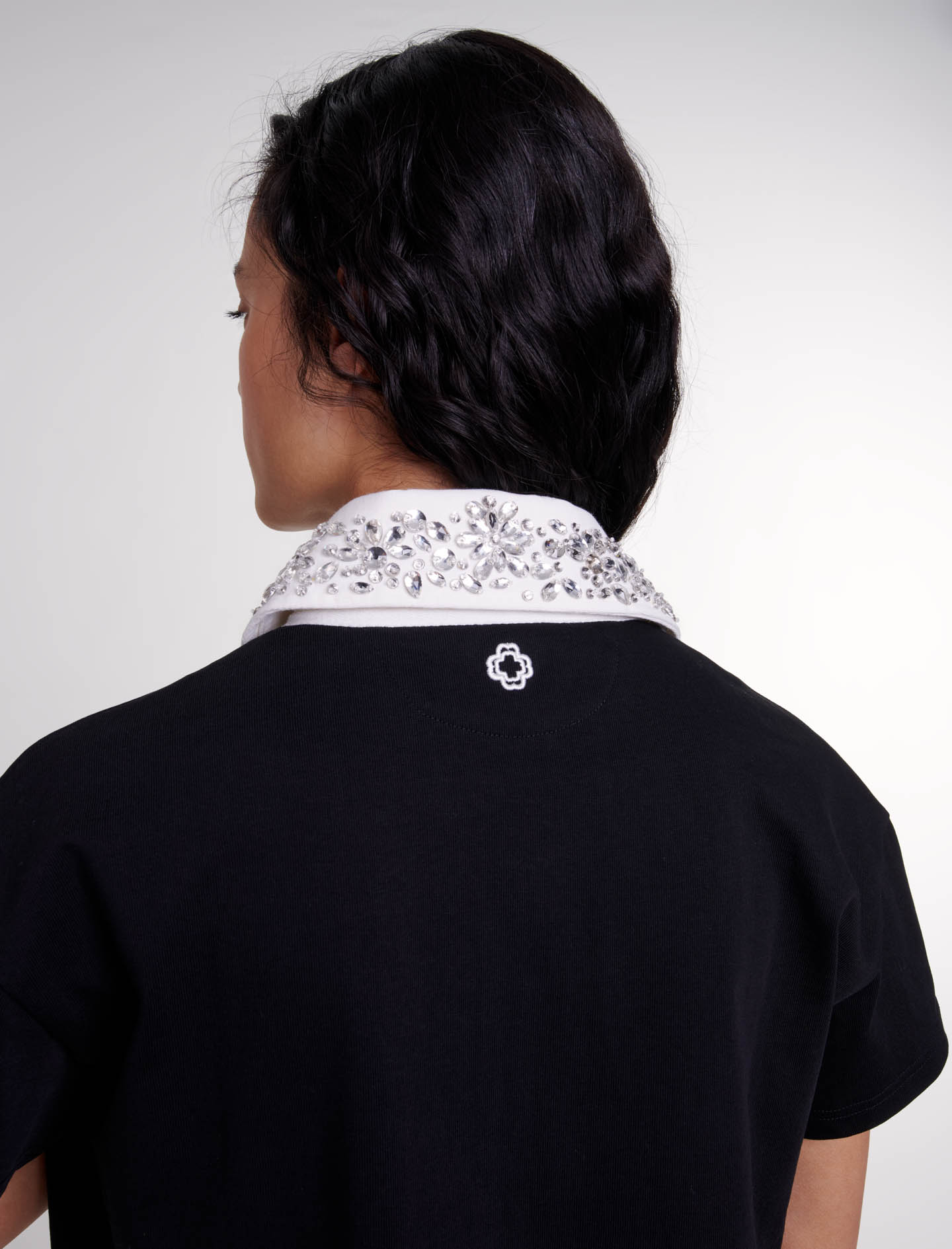 Maje Woman's cotton Embroidered rhinestone polo dress for Fall/Winter, in color Black / Black