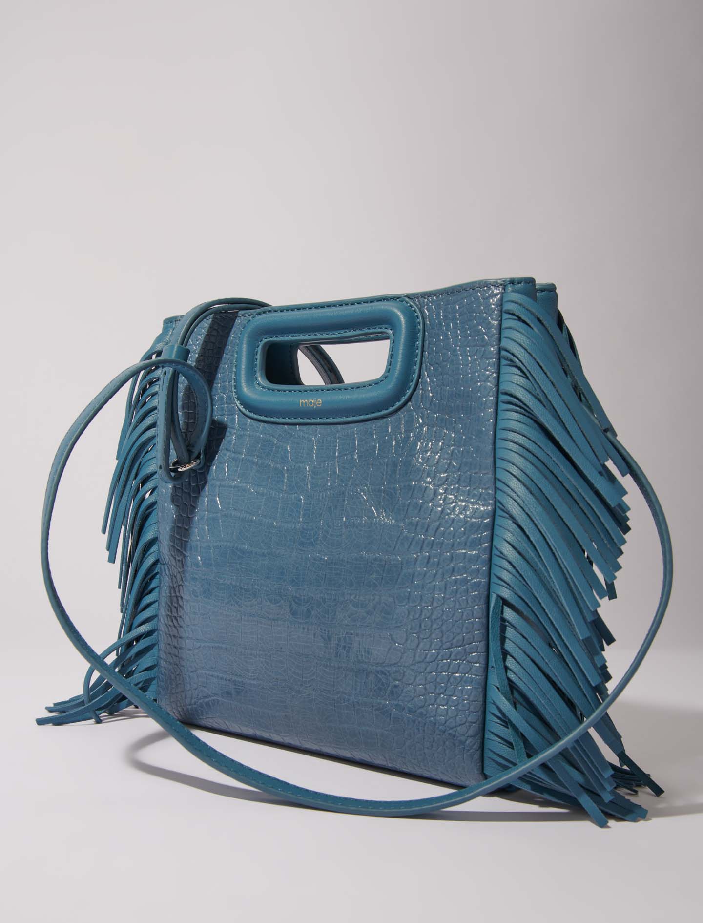 Maje Woman's leather Mock croc M bag for Fall/Winter, in color Blue / Grey /