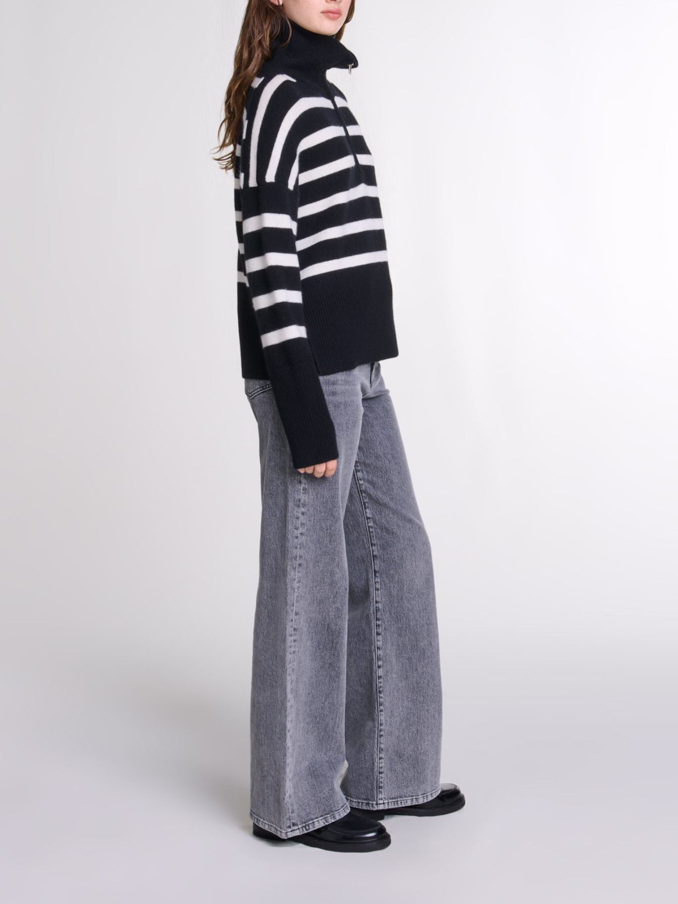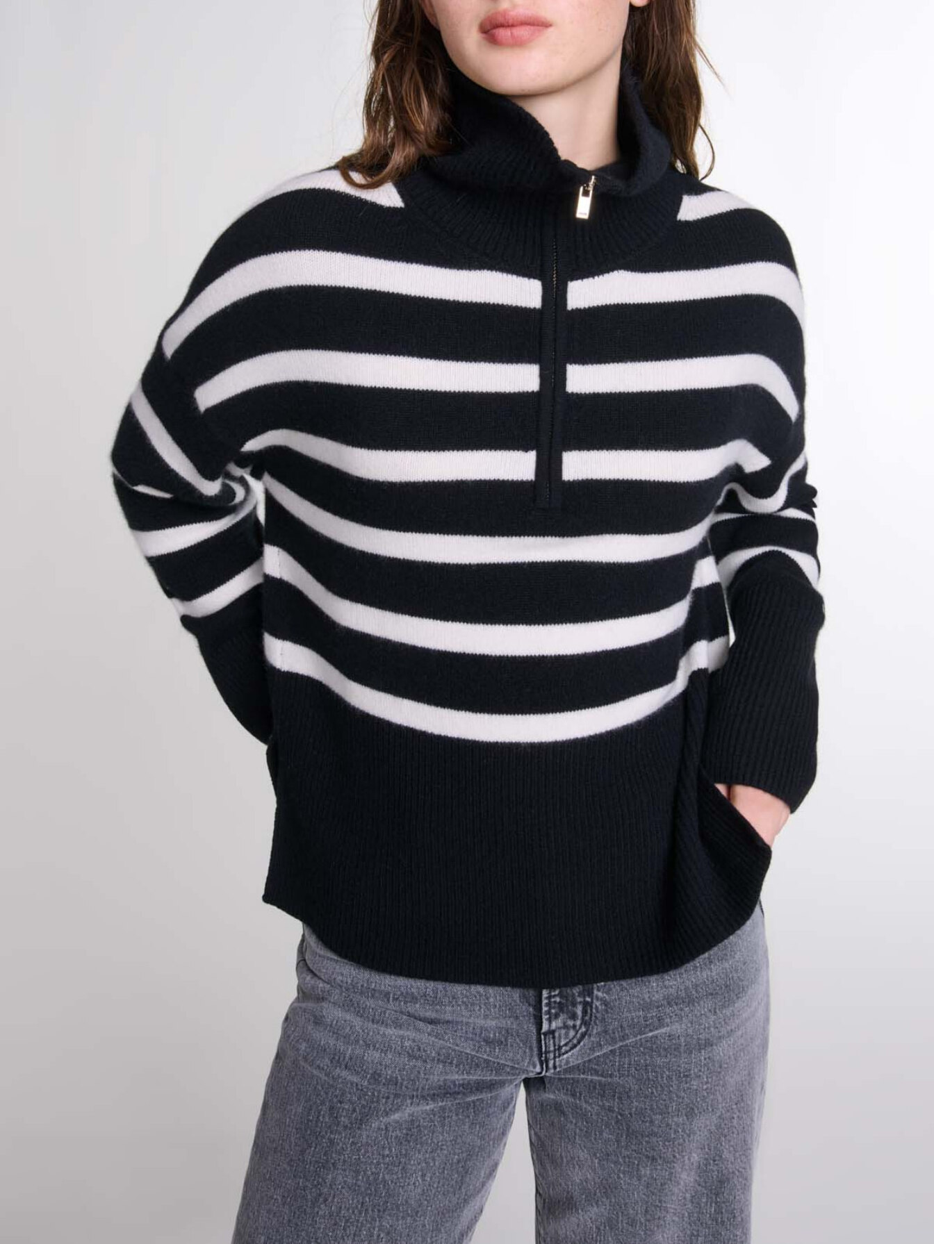 Maje Woman's cashmere Stripe print high-neck jumper for Fall/Winter, in color Black/Ecru /
