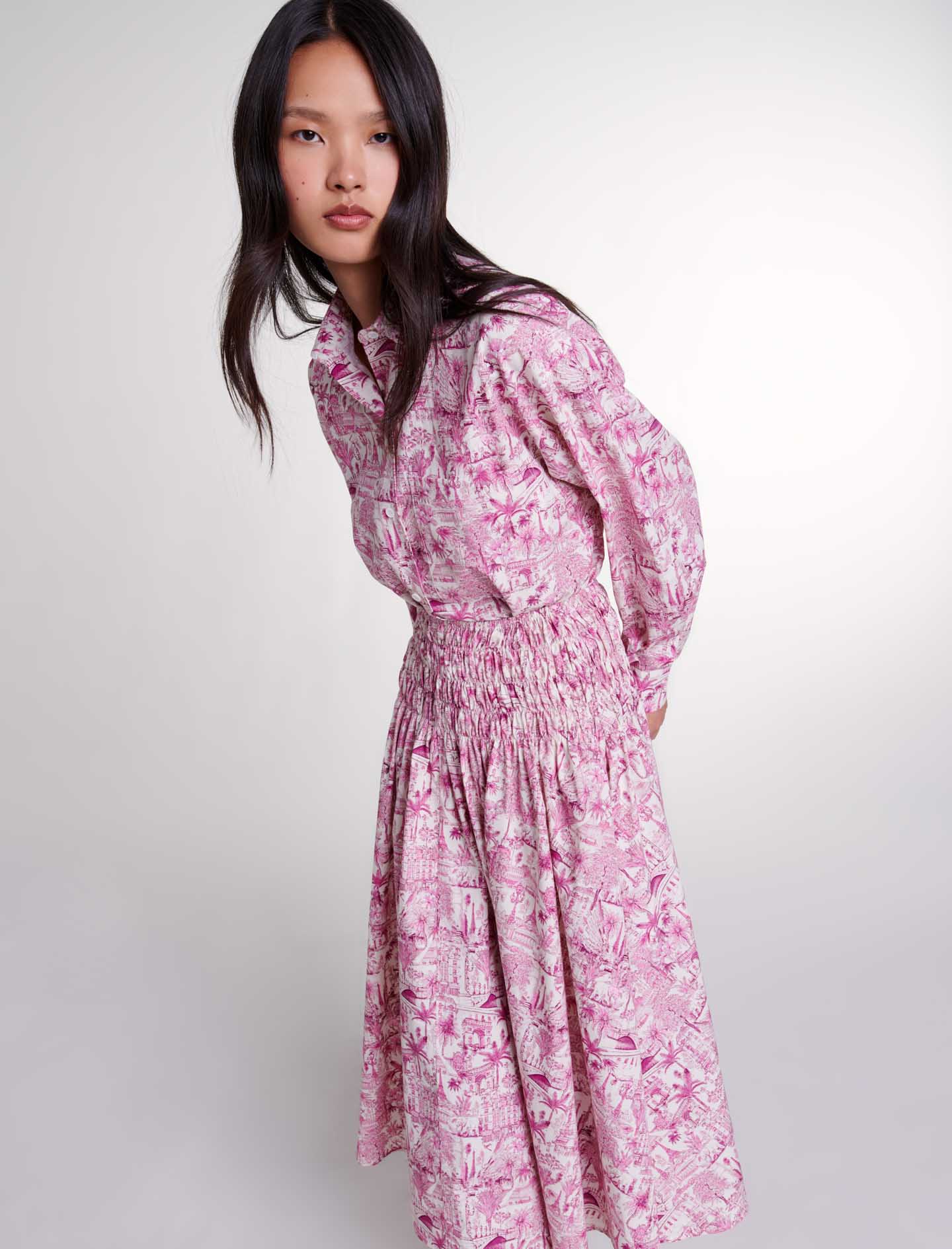 Maje Woman's cotton Printed Maxi Skirt for Fall/Winter, in color Paris pink print /