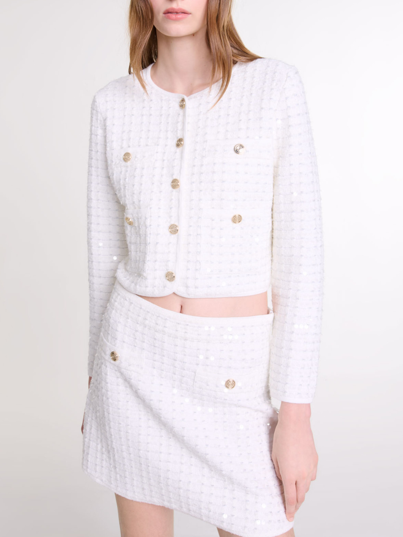 Maje viscose An ode to winter elegance, in dazzling white.