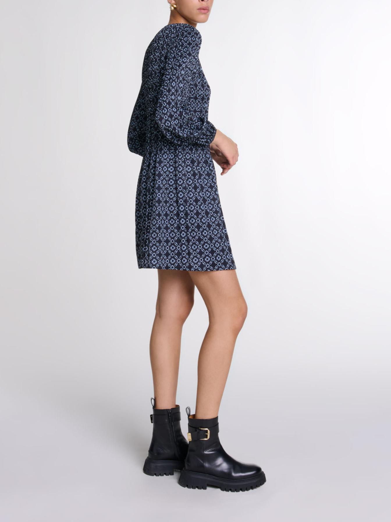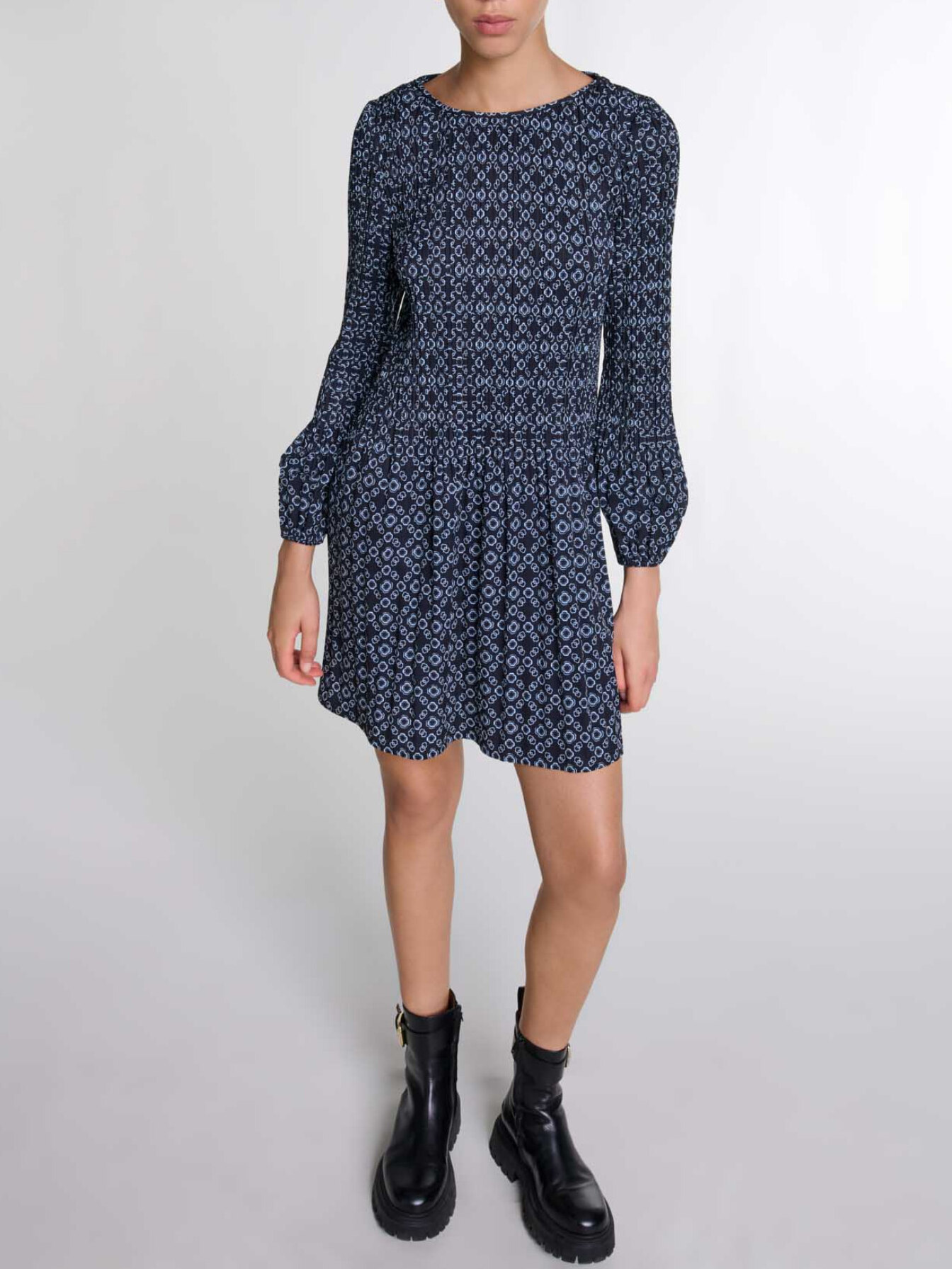 Maje Woman's polyester Short Clover motif dress for Fall/Winter, in color Black clover print /