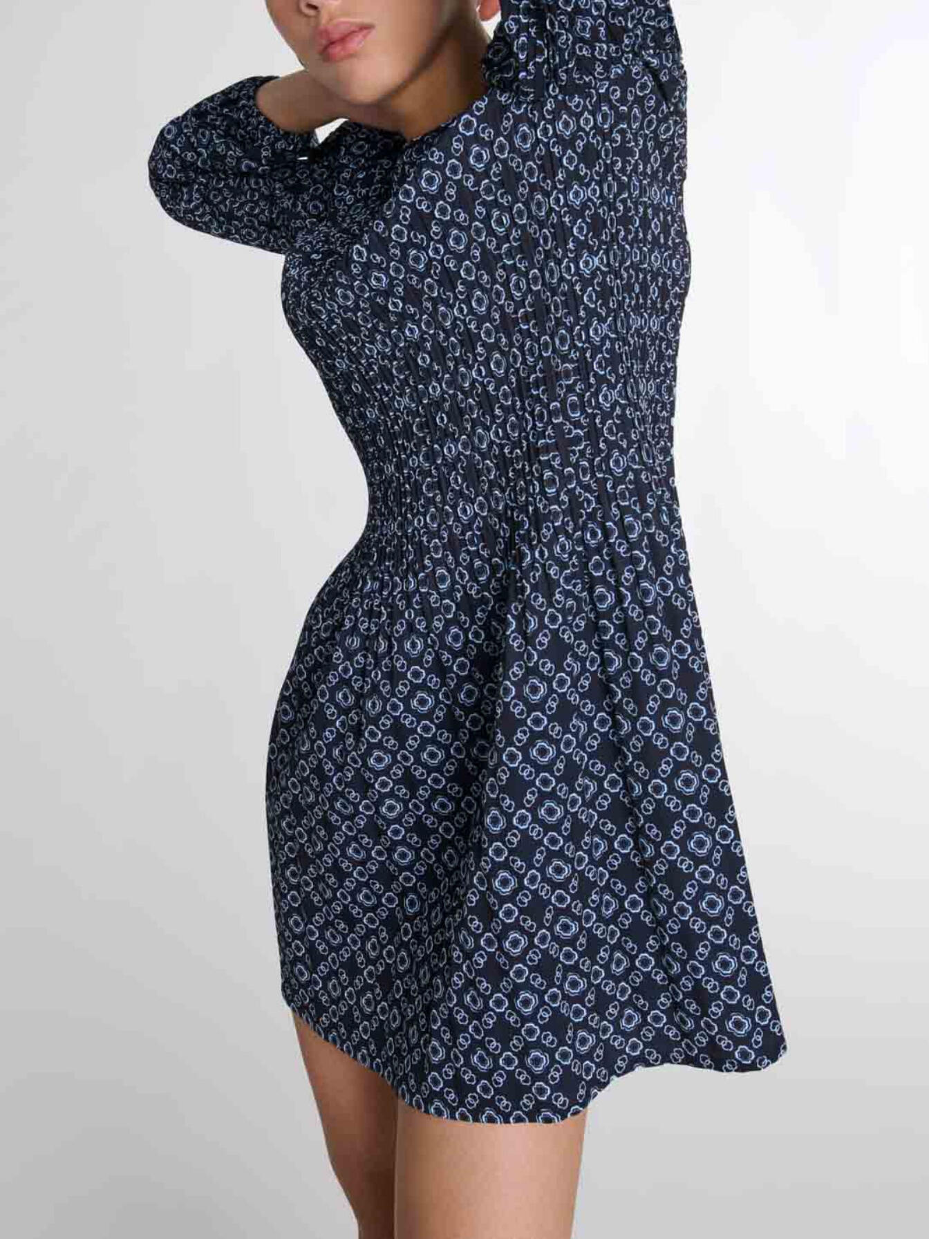 Short dress Clover motif Round neck Elasticated cuffs Flared skirt.