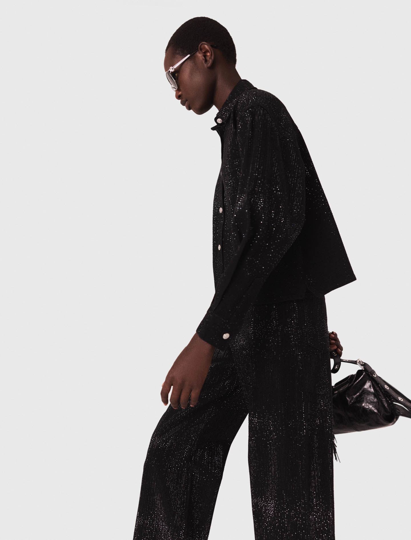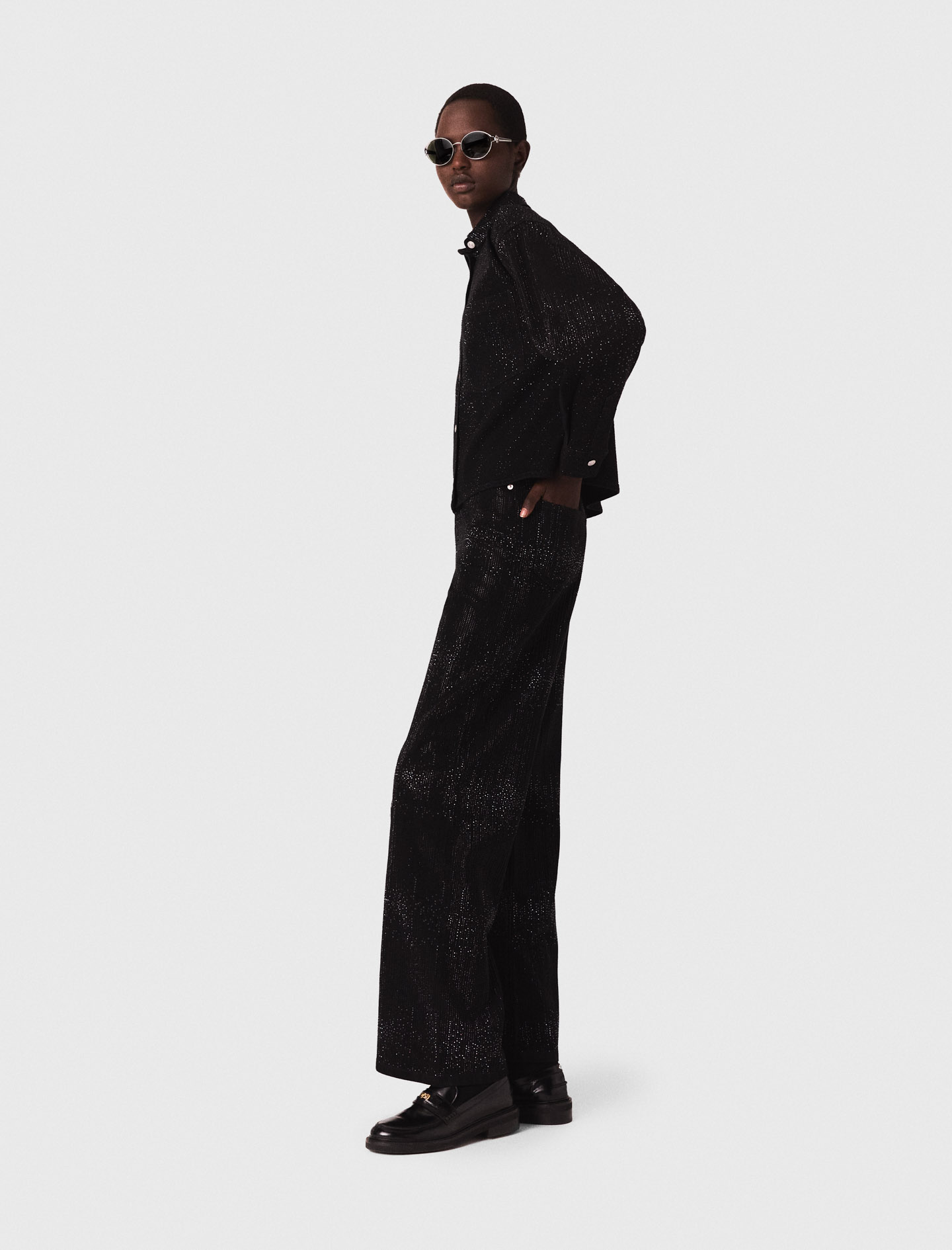 Add the matching jeans for a total look, with chic loafers and a fringed bag..