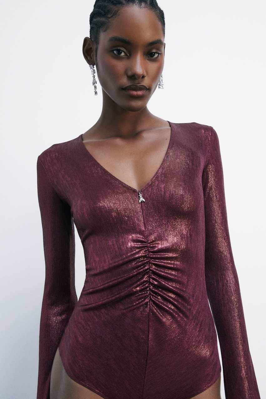 Body a maniche lunghe in jersey laminato dal finish iridescente.